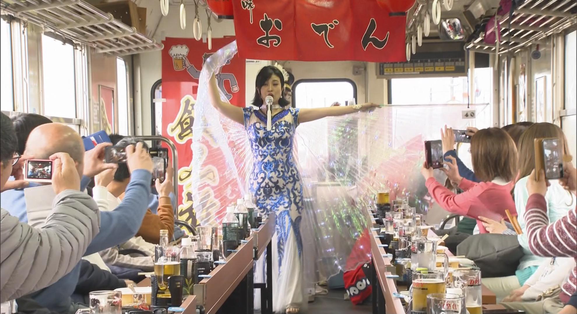 乗客はビール片手に飲んで歌って「昭和の世界」を満喫していました。