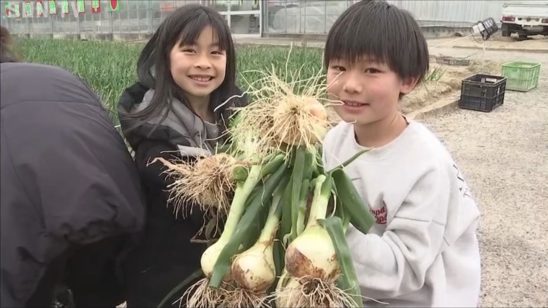 南あわじ市の観光施設では、わせ種のタマネギが旬を迎え、訪れた人が収穫を楽しんでいます。