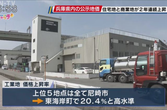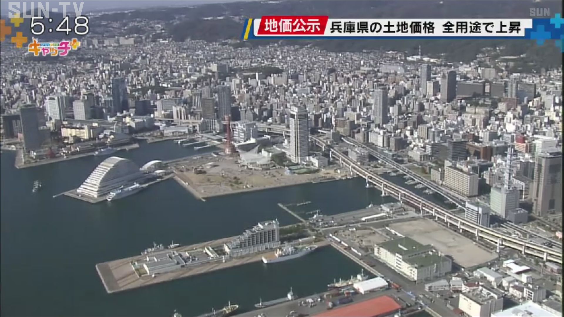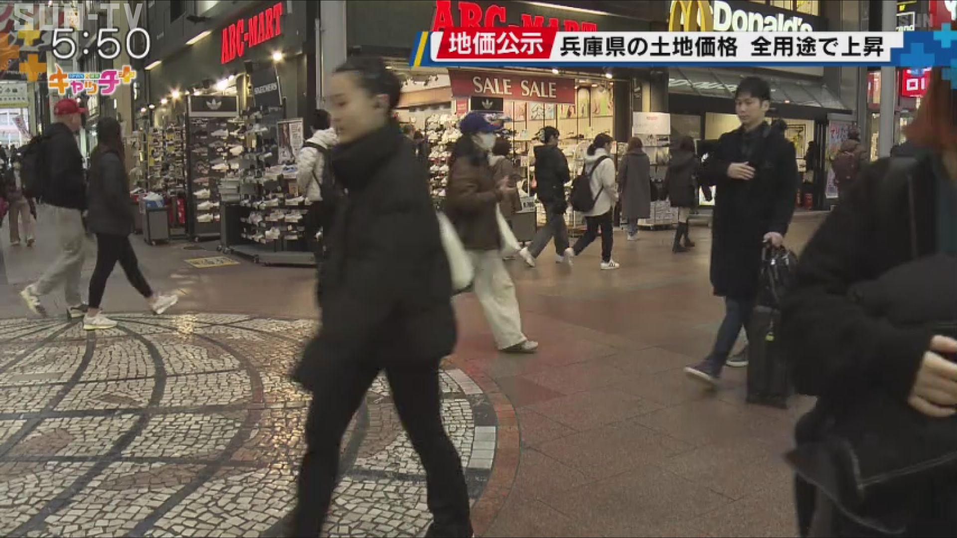 国土交通省が調査した全国各地の土地の価格が公表され、兵庫県内は住宅地や商業地などすべての用途で前年に続き上昇しました。