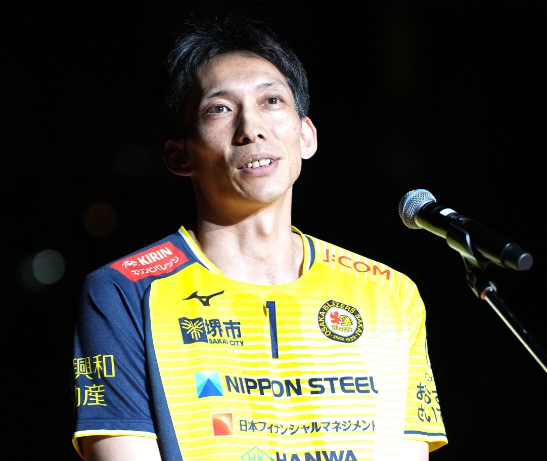 退団の挨拶をする 日本製鉄堺ブレイザーズ 1松本慶彦(3/23)/©SV.LEAGUE