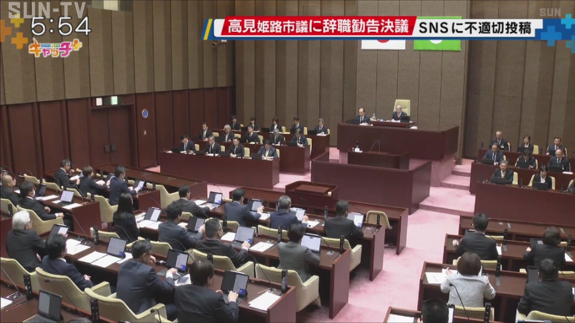 去年の兵庫県知事選を巡りSNSに不適切な投稿を繰り返したとして、姫路市議会は26日、高見千咲議員に対する辞職勧告決議案を全会一致で可決しました。