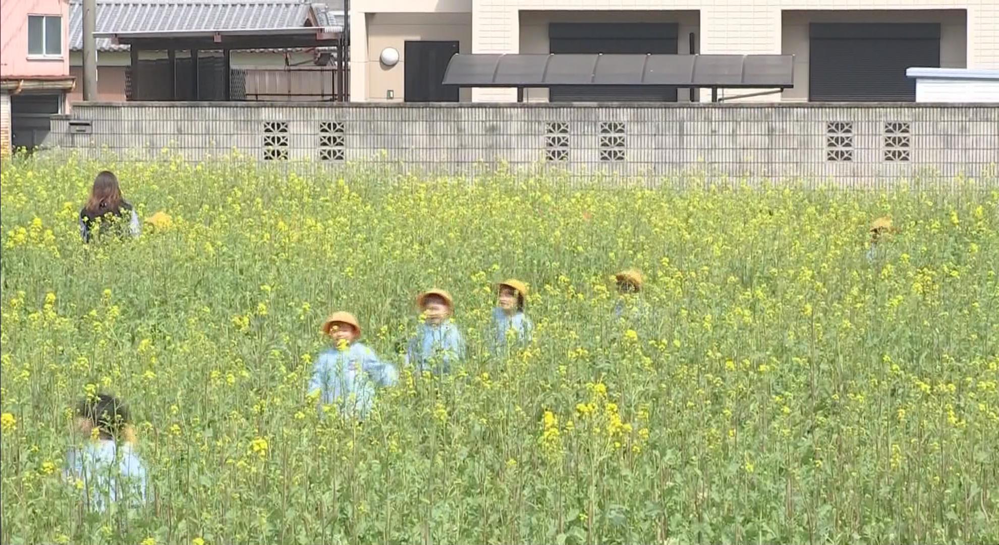 一面が黄色く彩られた菜の花畑。その中を子どもたちが元気に走り回っています。