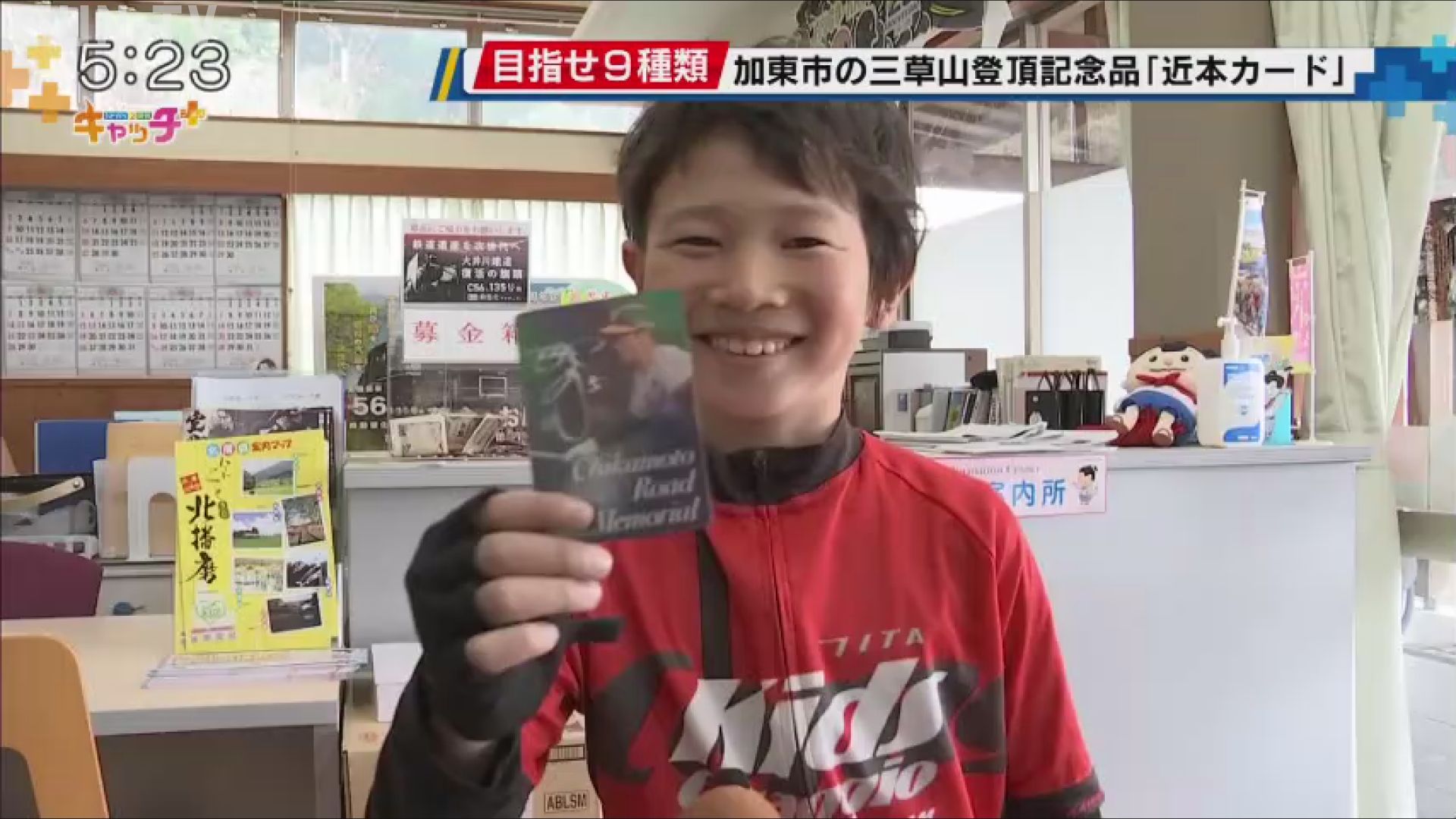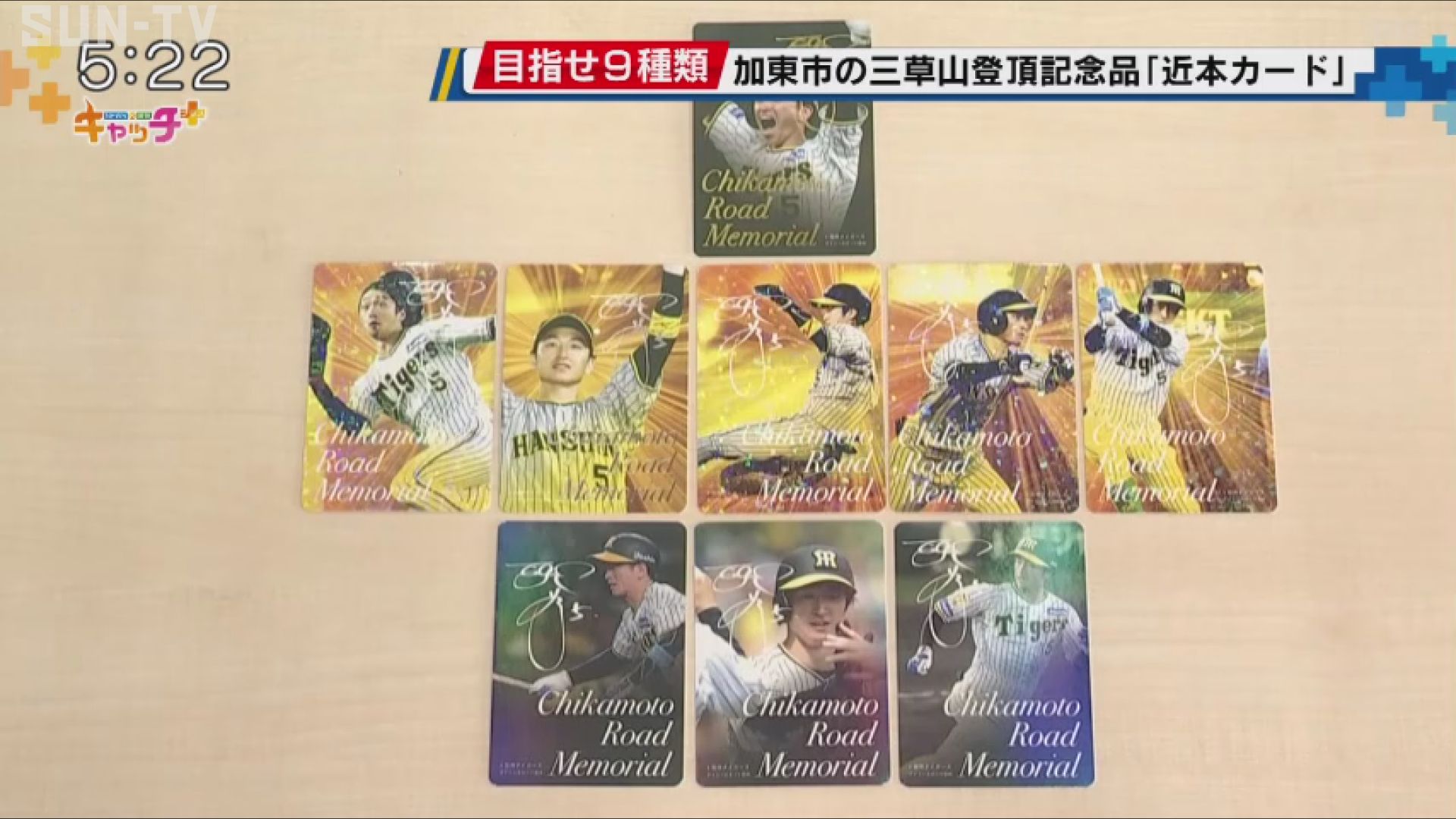 阪神タイガースの近本光司選手が、高校時代に足腰を鍛えた加東市の三草山で、登頂の記念品となる、近本選手の写真入りカードの配布が28日から始まりました。