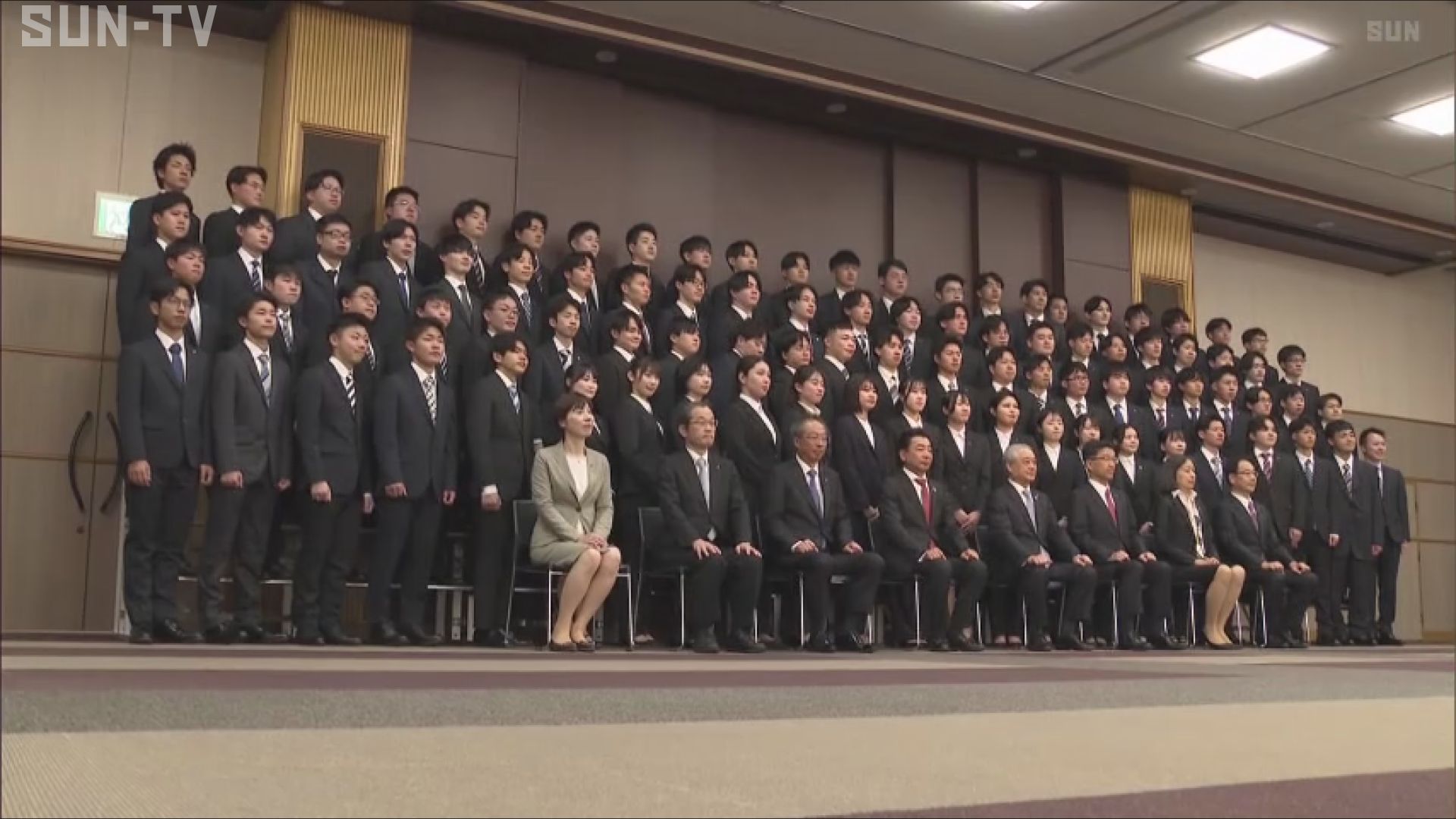 自動つり銭機などの貨幣処理機器で国内トップシェアを誇る姫路市の「グローリー」では、真新しいスーツに身を包んだ新入社員91人が緊張した面持ちで入社式に臨みました。
