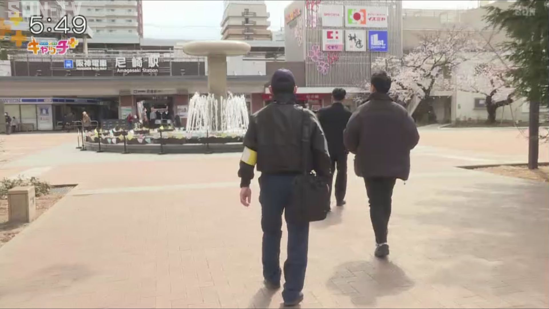 初日の1日は、3月29日にリニューアルオープンしたばかりの阪神尼崎駅前、中央公園などで指導員が巡回しました。