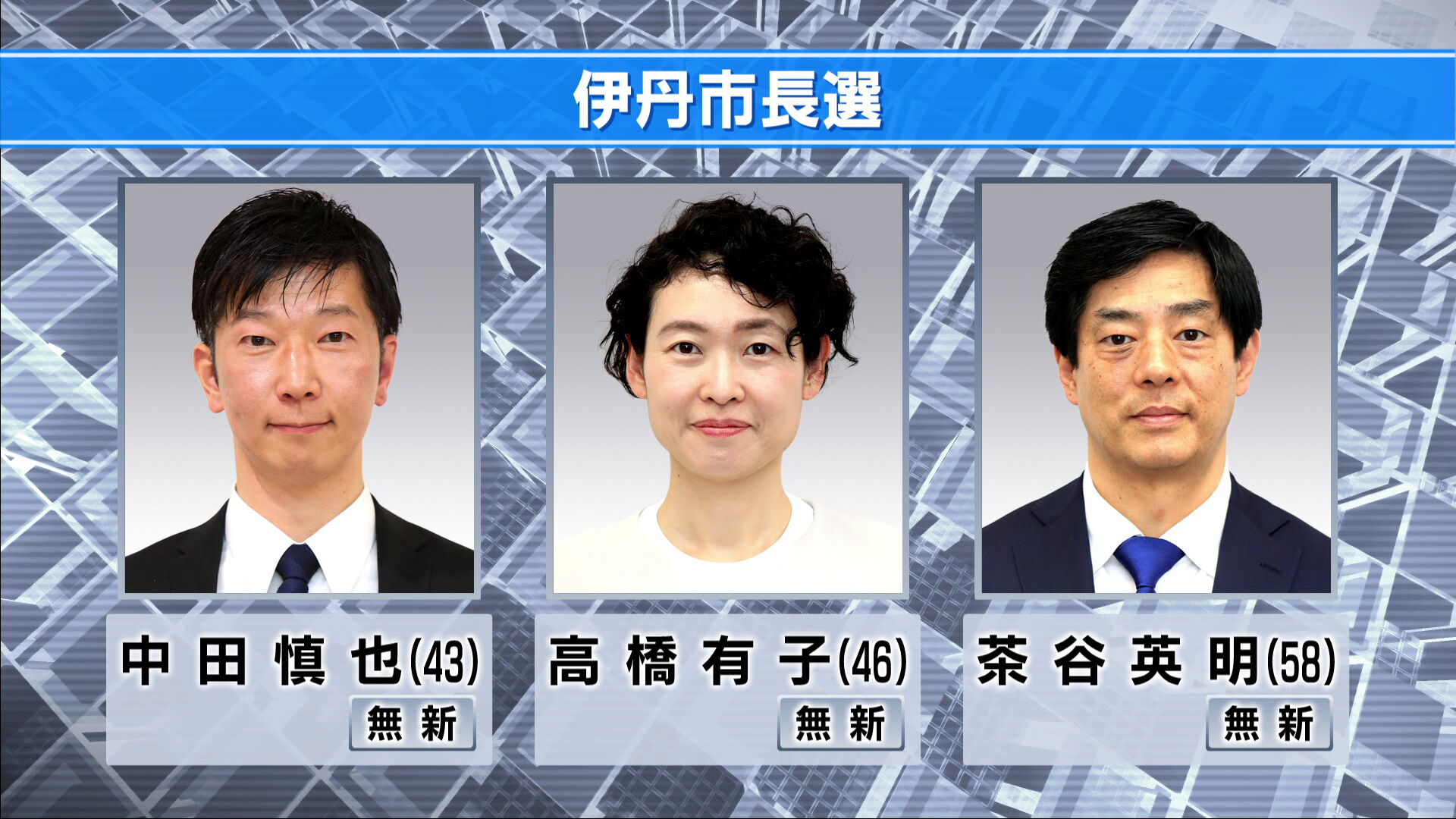 伊丹市長選に立候補したのは、届け出順に、いずれも無所属・新人で元兵庫県議の中田慎也(なかたしんや)さん(43)元伊丹市議の高橋有子(たかはしあこ)さん(46)、学習塾を経営する茶谷英明(ちゃたにひであき)さん(58)の3人です。