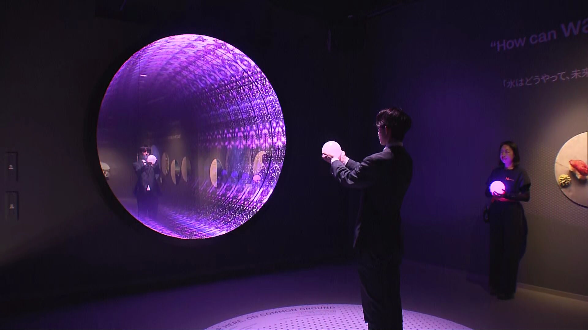 巨大リングをくぐると「万博の華」とされる世界各国のパビリオンなどが出現。