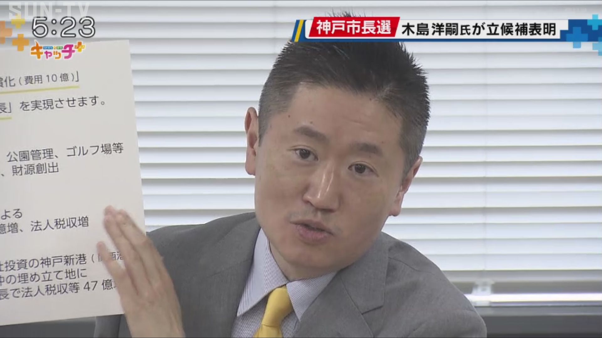 任期満了に伴い2025年10月に実施される神戸市長選に、ニュース分析会社社長の木島洋嗣さんが無所属での立候補を表明しました。