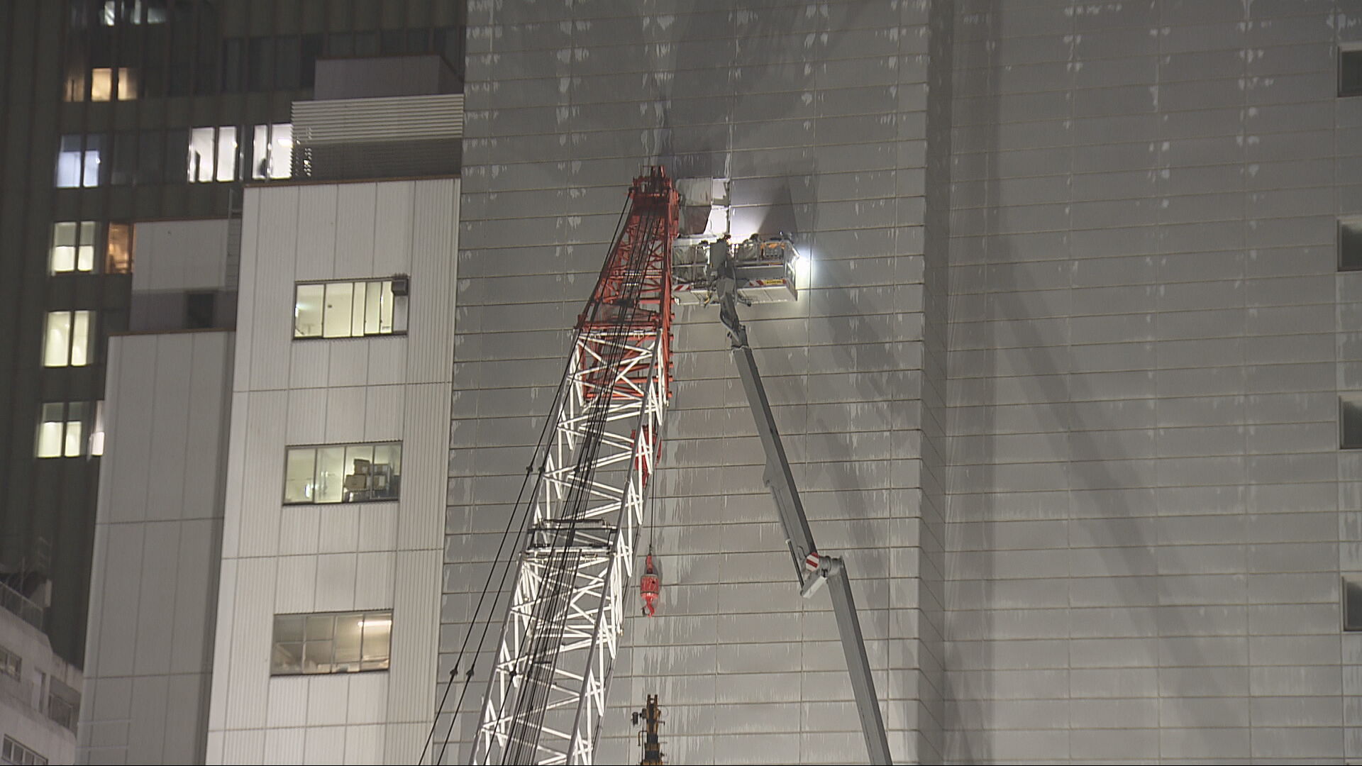 工事の施行会社によりますと、事故はクレーンを上下させるレバーに作業員が誤って触れたことが原因で、クレーンが下がっていることに気付かずにビルに接触したということです。