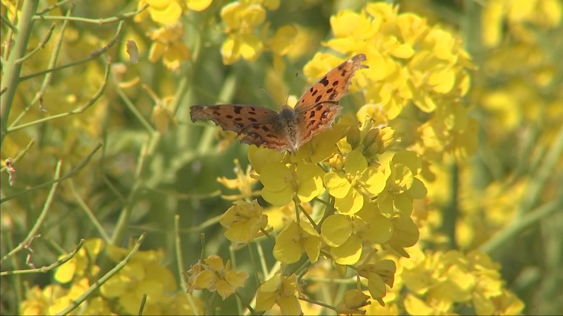 朝来市和田山町の夜久野高原にある「朝来四季彩の丘」では、阪神甲子園球場とほぼ同じ4ヘクタールの広大な花畑に植えられた、およそ60万本の菜の花が見頃を迎え、多くの観光客でにぎわっています。