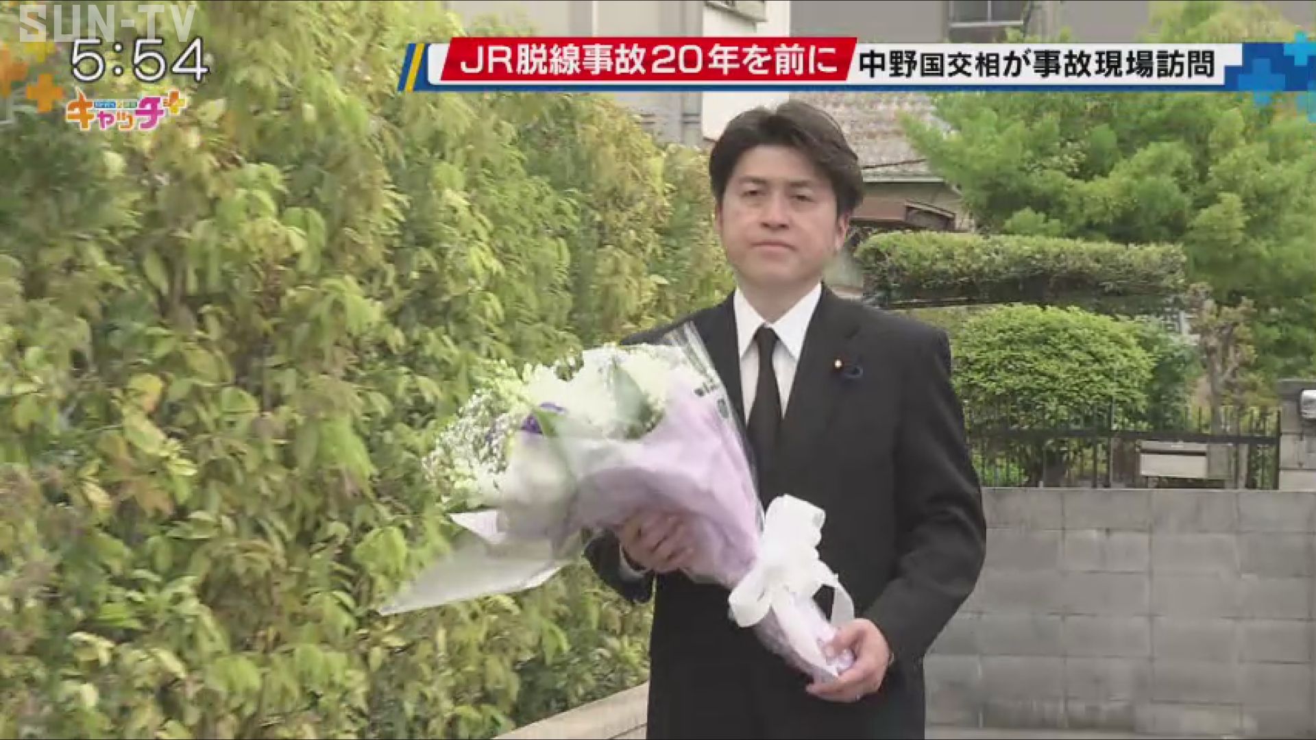 4月25日でJR福知山線脱線事故から20年となるのを前に、中野洋昌国土交通大臣が20日、事故現場を訪れ犠牲者に花を手向けました。