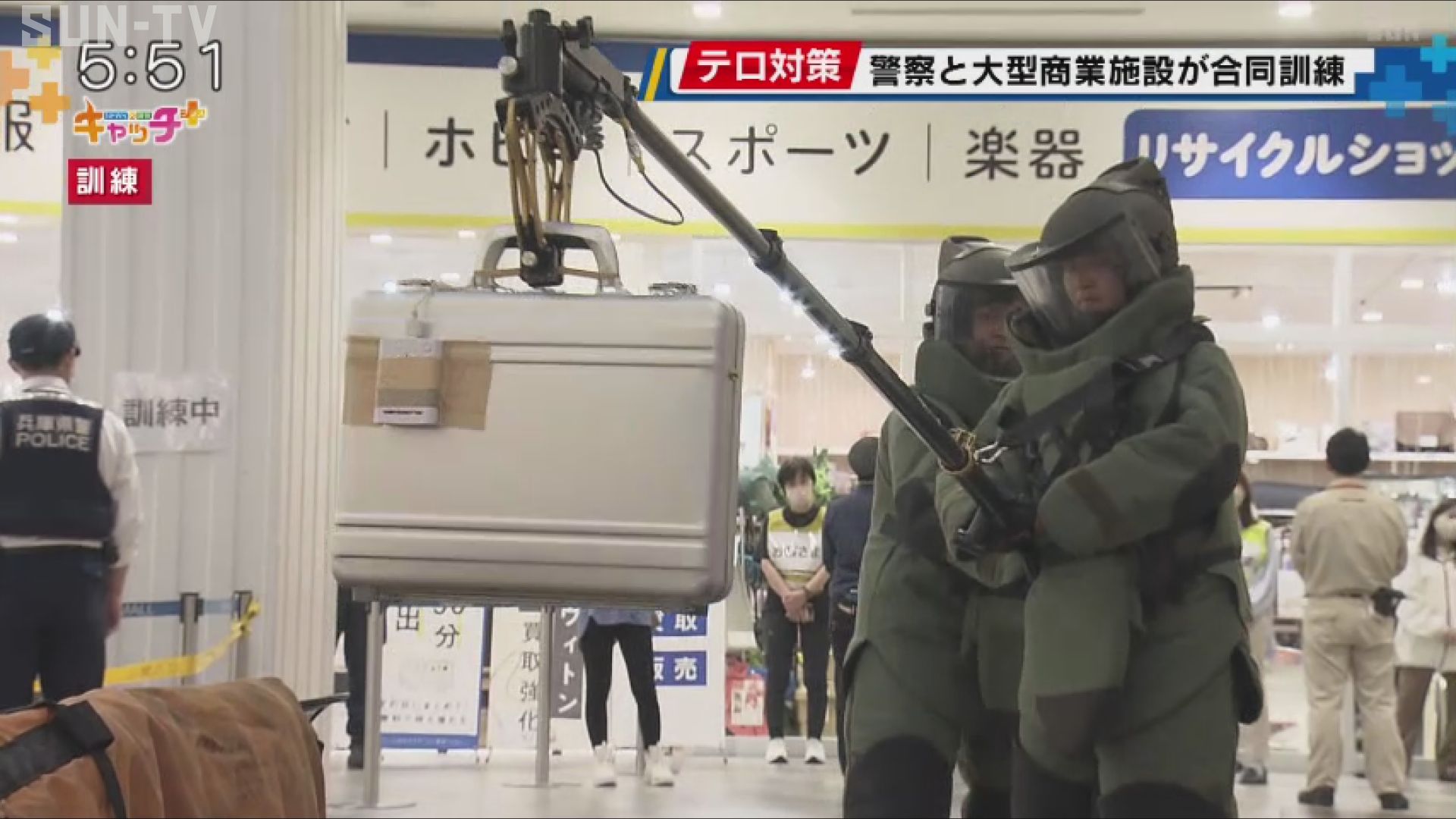 神戸空港の国際チャーター便運航が始まり、国内外から多くの観光客が見込まれる中、神戸市兵庫区の大型商業施設でテロを想定した訓練が行われました。