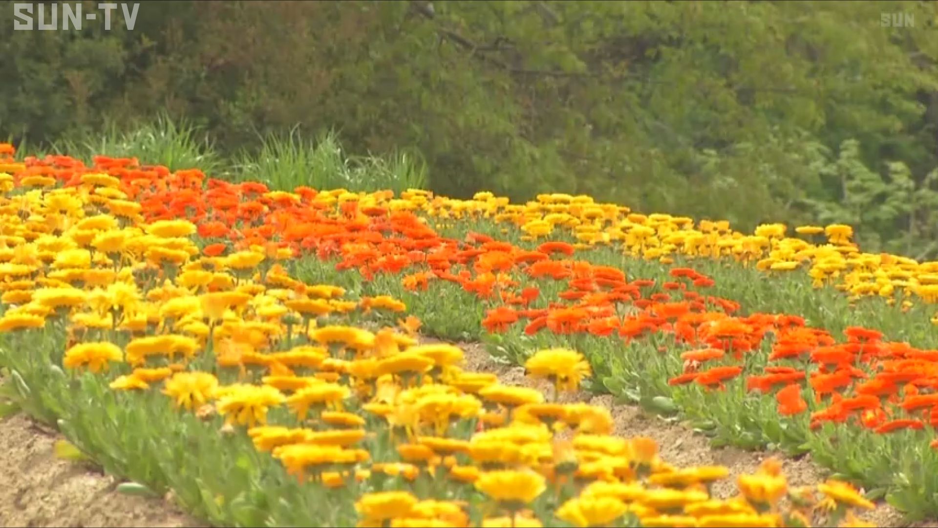 淡路市にある「パルシェ香りの館」では、約1500株の「カレンデュラ」が見頃を迎え、甘い香りを漂わせています。