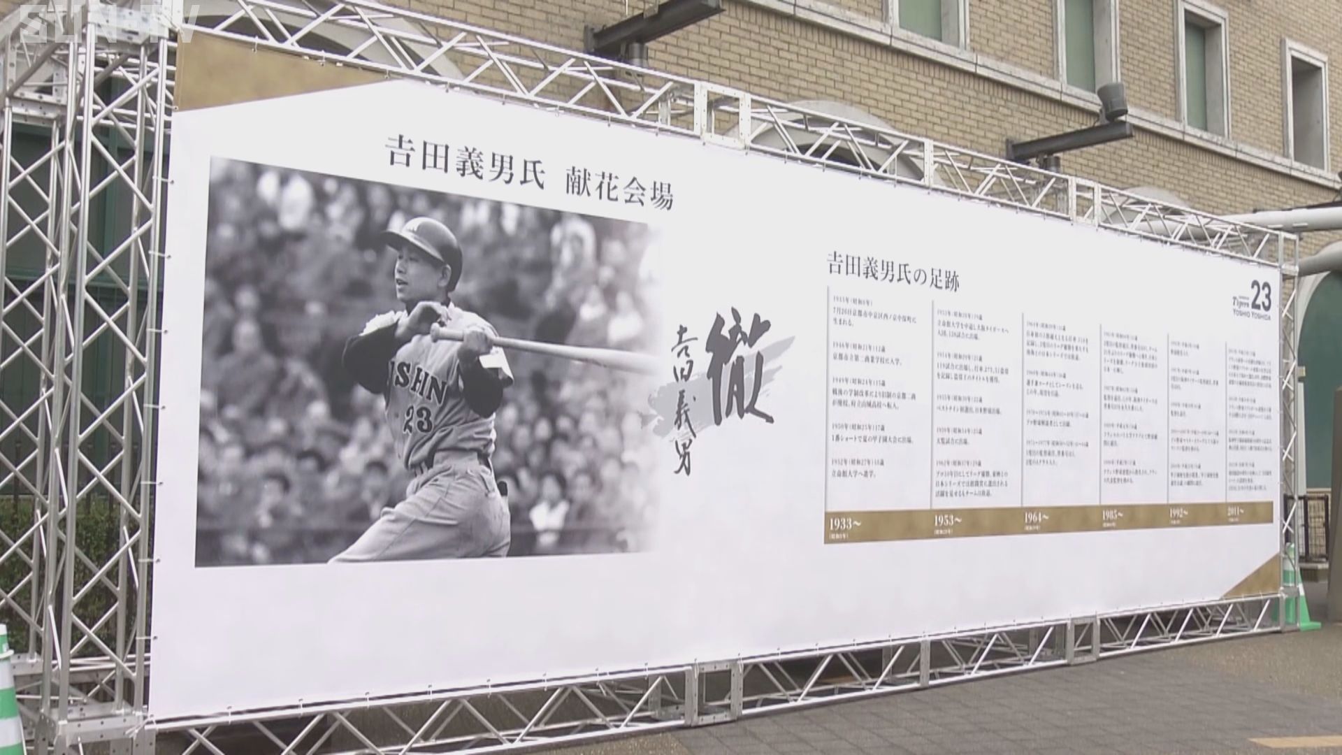 甲子園球場で開かれている吉田義男さんの一般献花会には、午前10時の開場に合わせファンが集まり、献花台に花を手向け故人をしのびました。