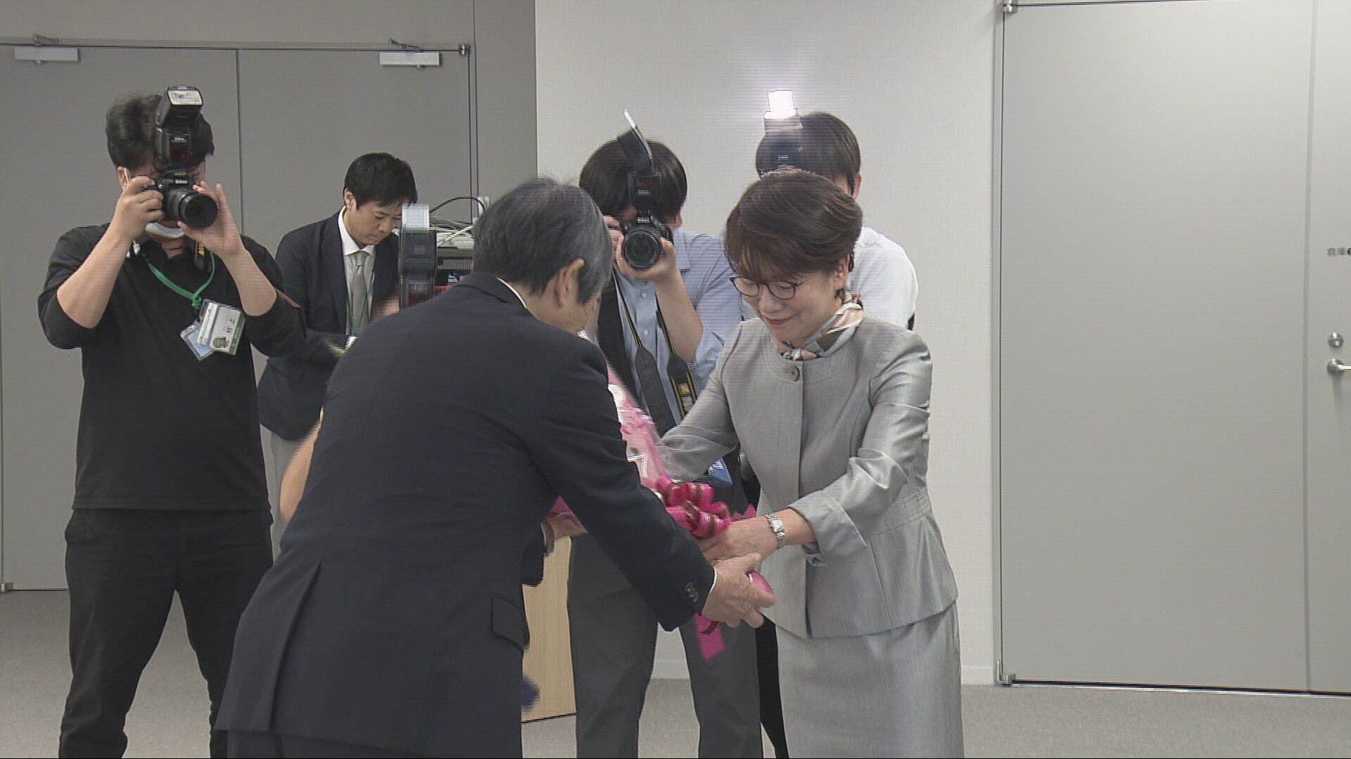 退任式では職員に感謝を述べたあと、市民のために多様性を大事にしてほしいと言葉を贈りました。