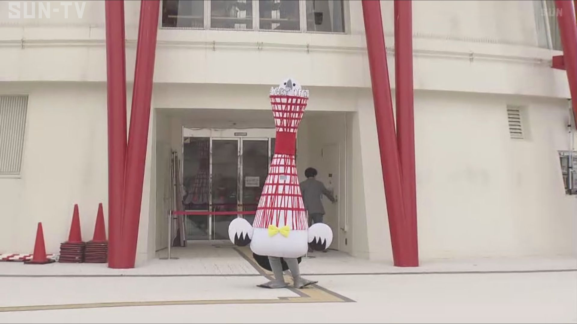 コウノトリとポートタワーが融合したデザインで、兵庫県出身のアーティスト井上涼さんが制作。