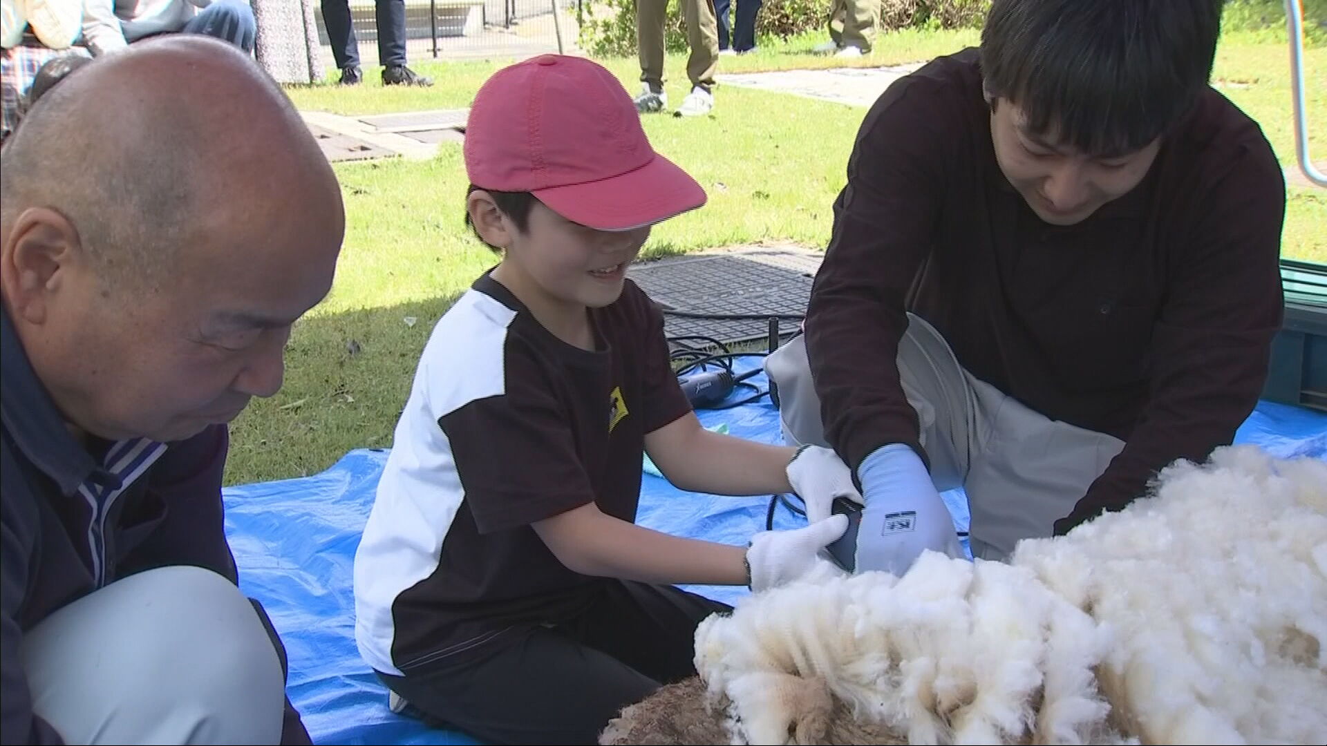 兵庫県新温泉町の県立但馬牧場公園で、子どもたちがヒツジの毛刈りに挑戦しました。