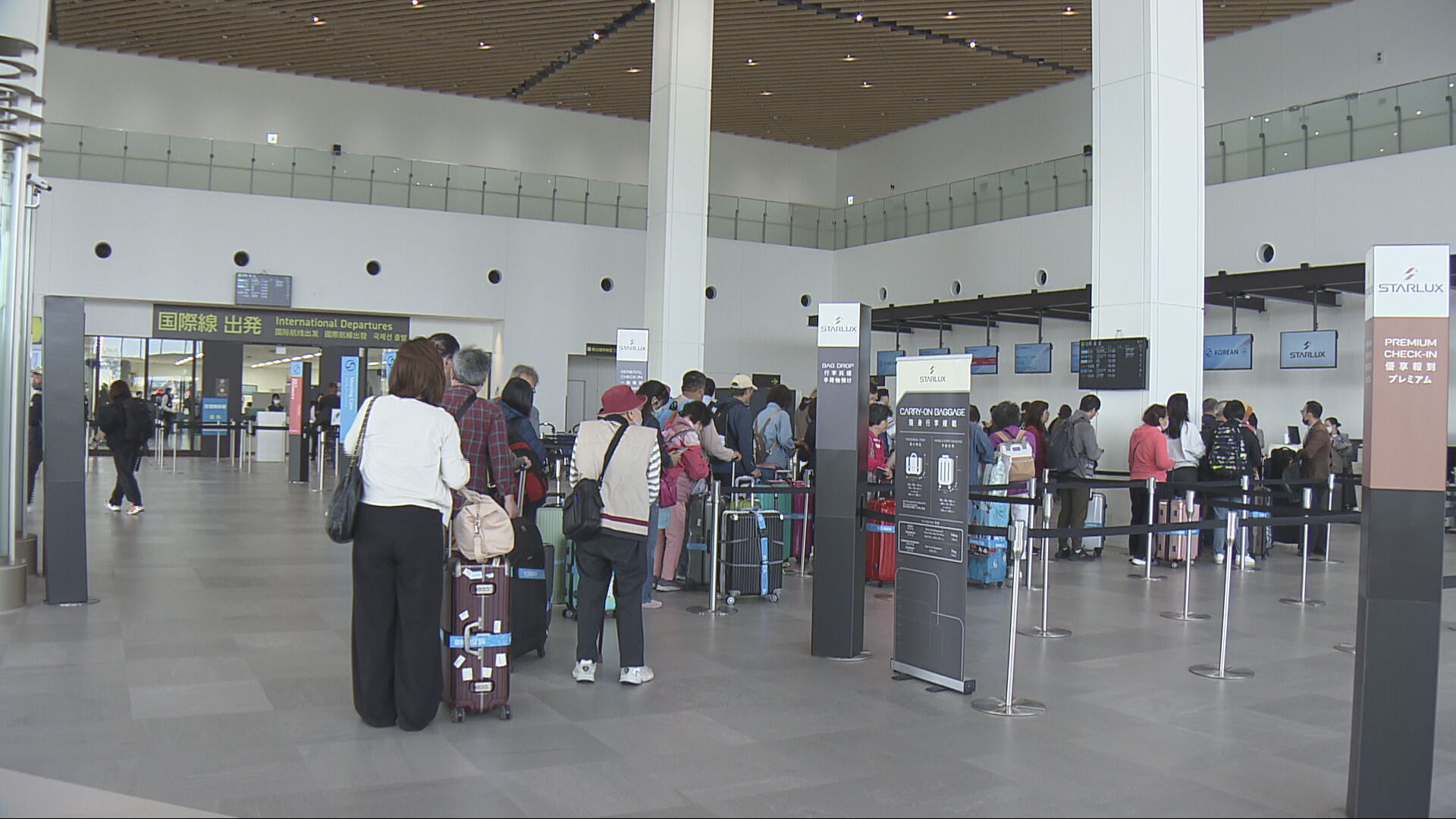 新たに建設された第2ターミナルビルには、ゴールデンウイークを利用して海外旅行に向かう人や、日本で観光を楽しんだ外国人旅行者の姿も多く見られ、午前には、台北とソウル行きの2便が出発しました。