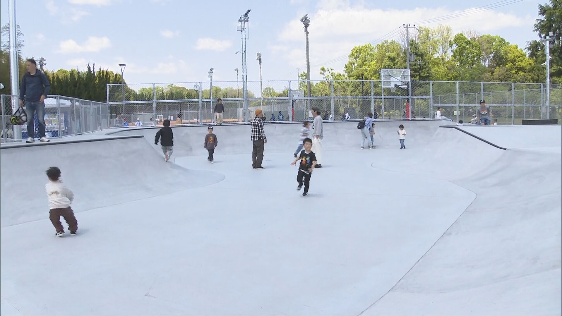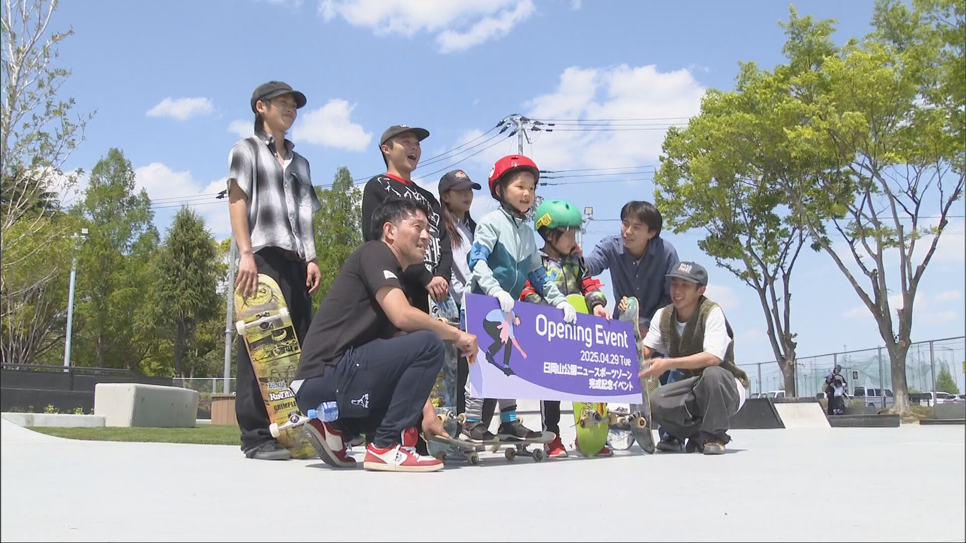 兵庫県加古川市の「日岡山公園」に、スケートボードなどが楽しめる新たな施設が完成し、4月29日記念イベントが開かれました。