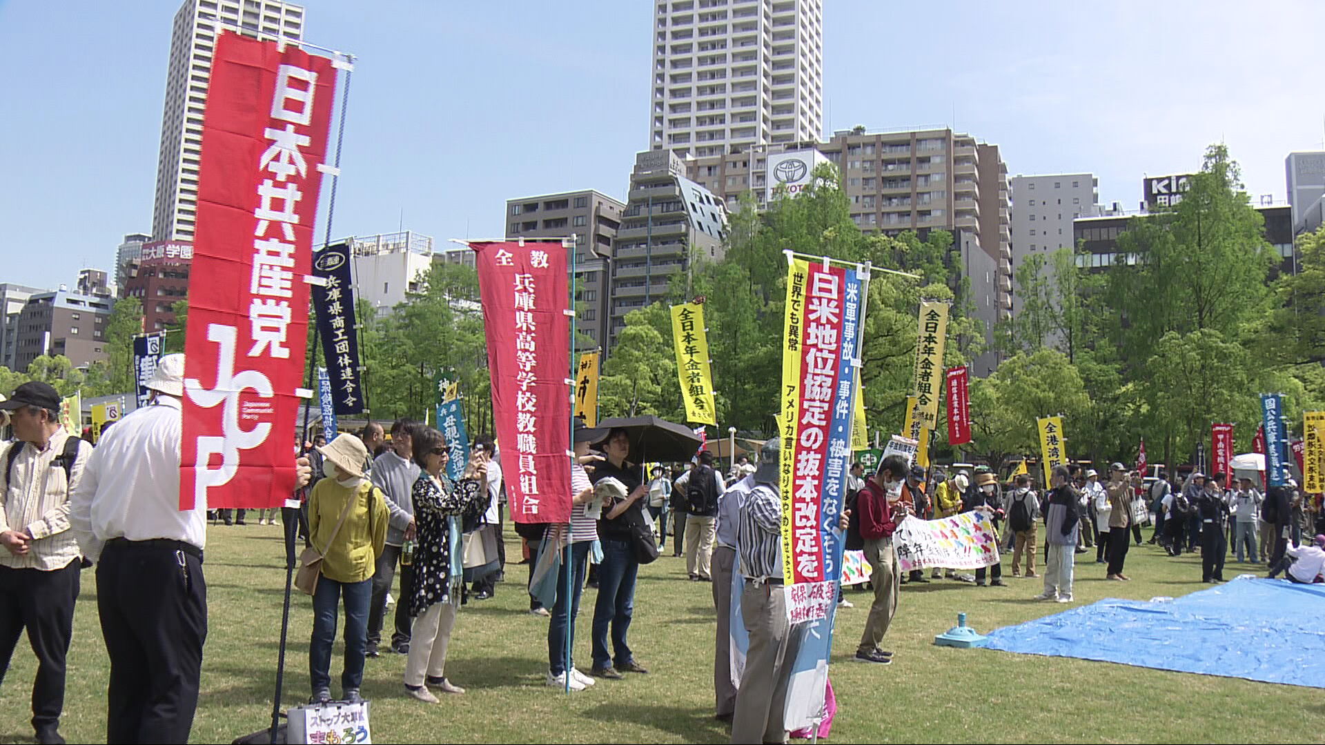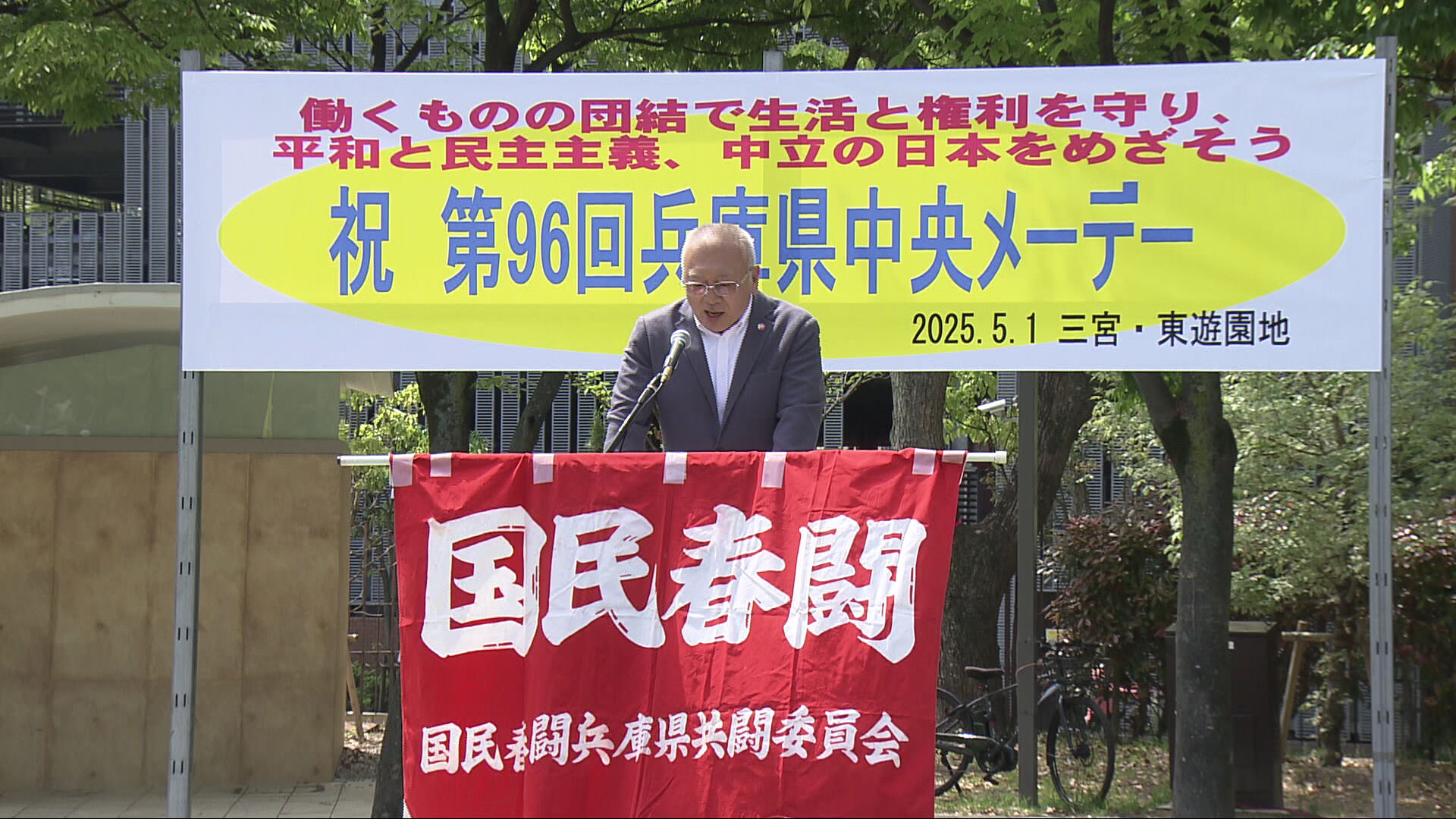 賃上げや労働環境改善を 県内各地でメーデー集会 2025.05.0207:14 地域・まち 深刻な物価高が続く中、メーデーの5月1日、県内各地で労働組合などが集会を開き賃金の引き上げなどを訴えました。 このうち、兵庫県神戸市で開かれた集会にはおよそ750人が参加しました。 集会では兵庫労連の成山太志議長が「物価上昇を上回る賃上げや消費税減税を求めて闘っていく」とあいさつし、参加した人たちが人手不足や長時間労働の現状について声を上げていました。 集会の後にはデモ行進が行われ、参加した人たちは労働環境の改善などを訴えていました。 #メーデー 記事のギャラリーを見る ニュース一覧へ戻る