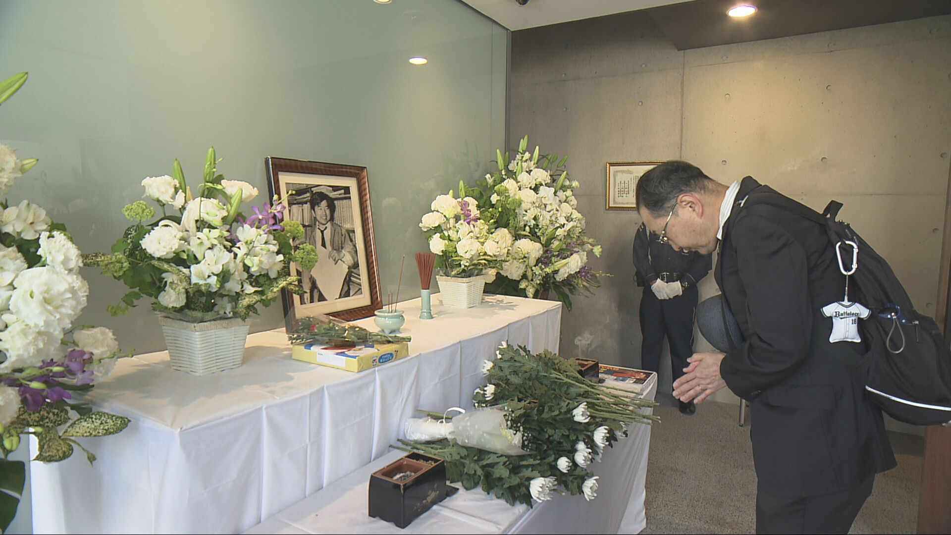 朝日新聞阪神支局の1階に設けられた祭壇には、事件で亡くなった小尻知博記者をしのぶ人たちが、朝から献花に訪れています。