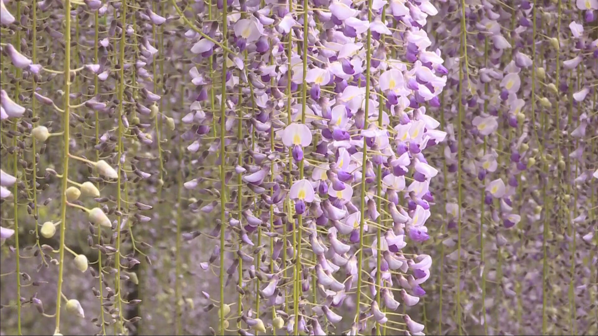 丹波市の白毫寺では、約120メートルの藤棚に咲く名物の「九尺ふじ」が見頃を迎えています。