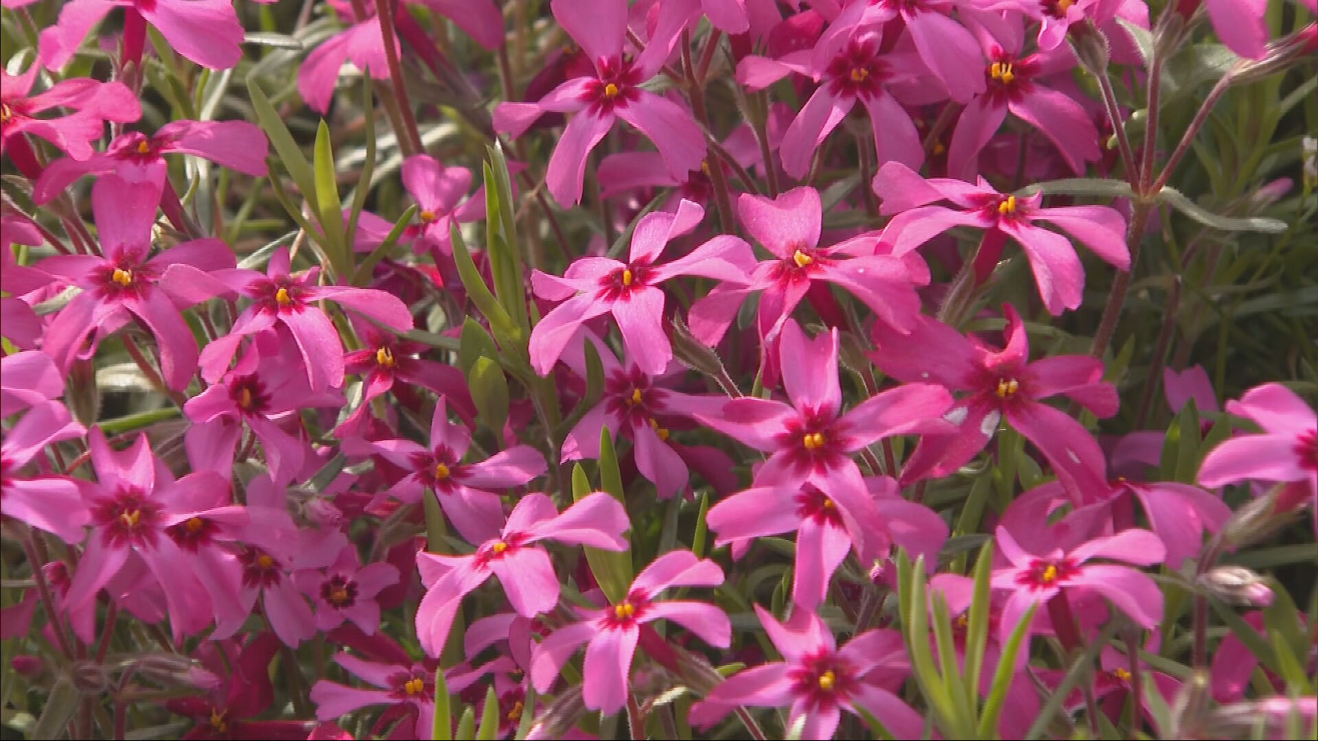 姫路市では老舗かまぼこ工場の敷地内に咲くシバザクラが見頃を迎えています。