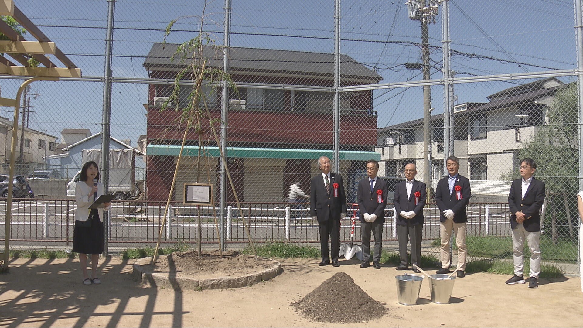 2つの震災の記憶をつないでいこうと施設のグラウンドには東日本大震災の被災地である福島県の「三春滝桜」の苗木が植樹されました。