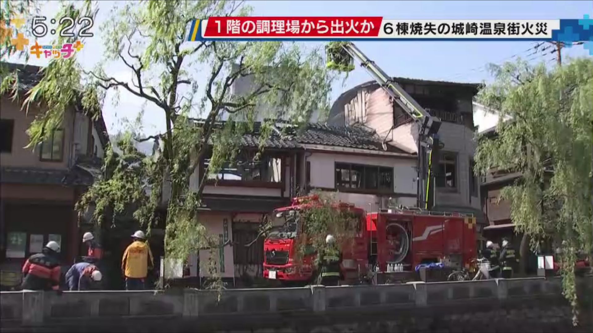 5月5日、豊岡市の城崎温泉にある旅館から火が出て、隣接する店舗など合わせて6棟が焼けた火事で、火は旅館1階の調理場から出た可能性が高いことが分かりました。