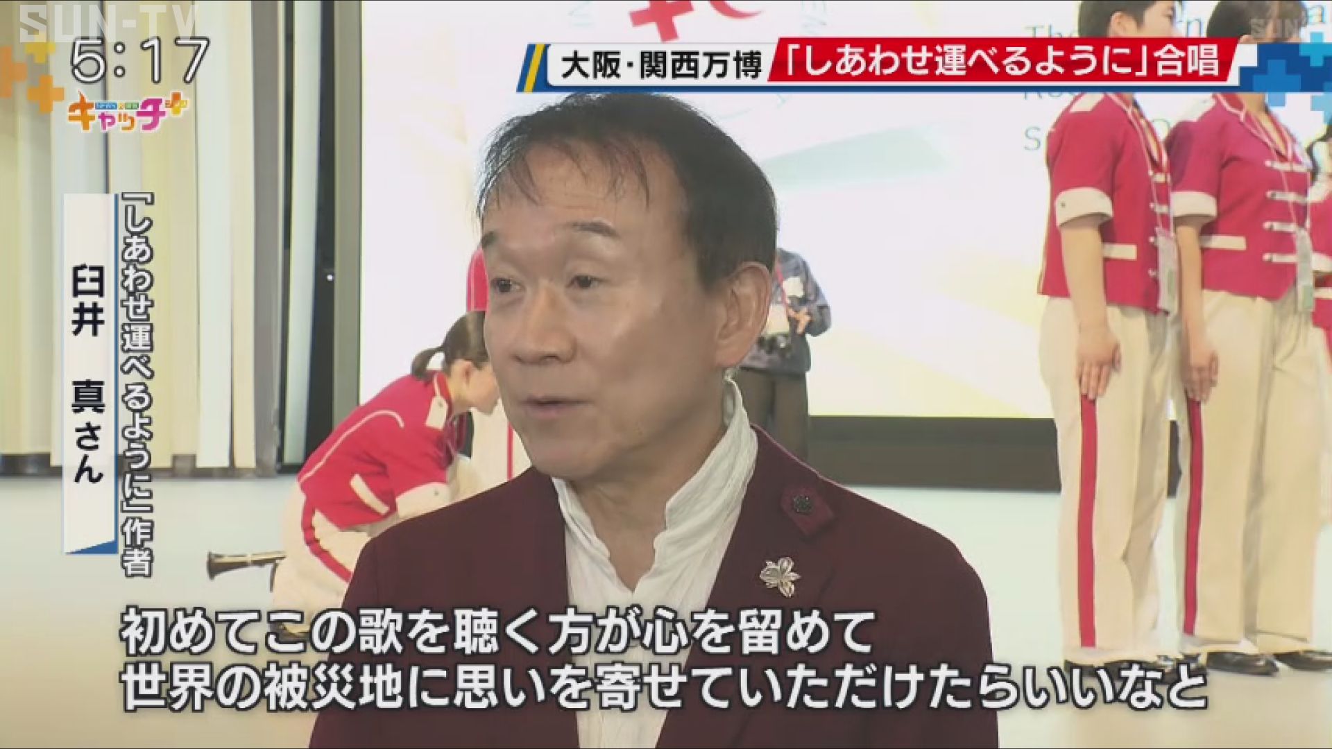 大阪・関西万博の会場では災害時の医療活動など赤十字の活動への理解を深めてもらおうと式典が開かれ、阪神淡路大震災からの復興を願い歌い継がれてきた「しあわせ運べるように」の合唱が披露されました。