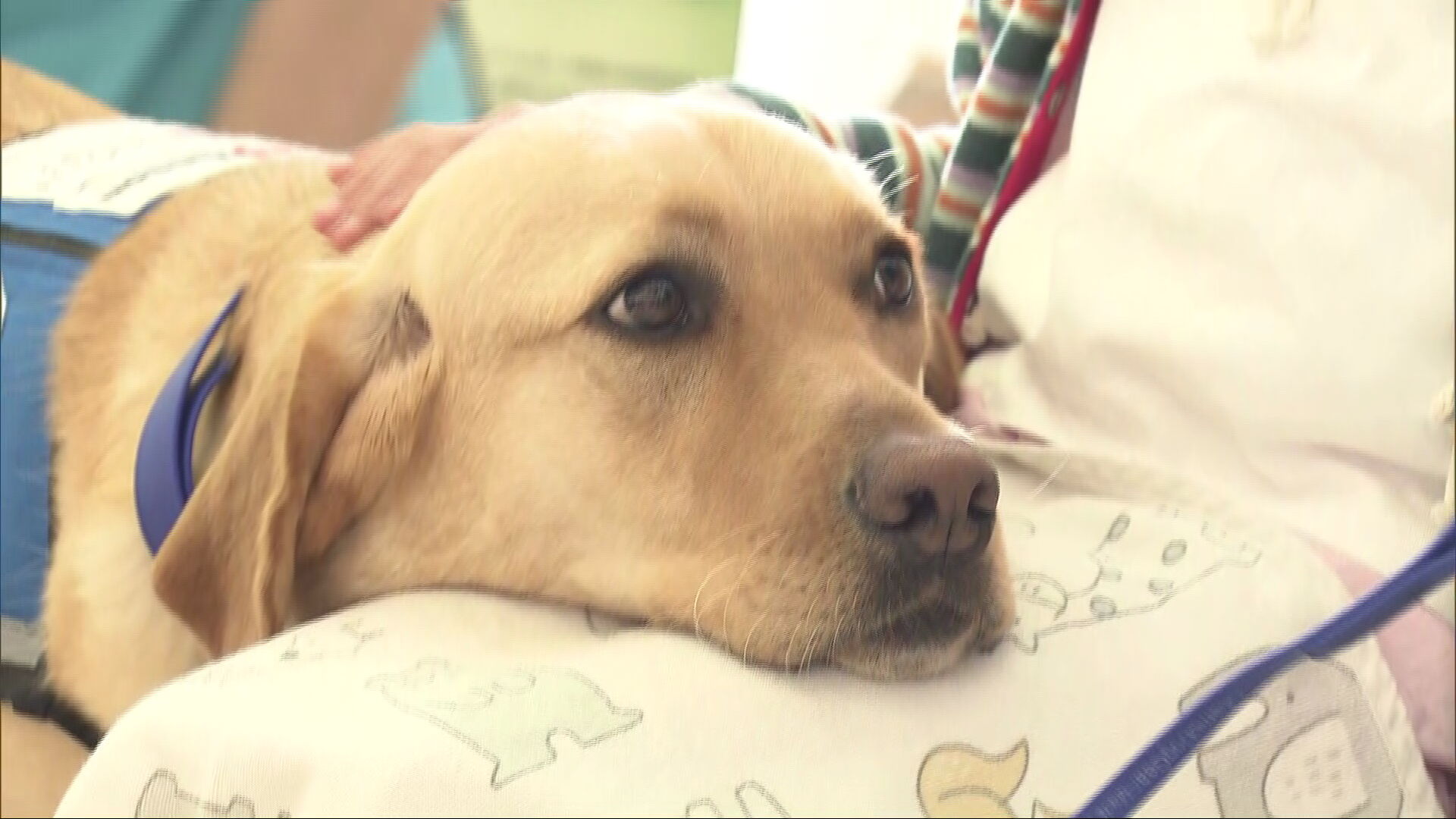 「ファシリティドッグ」は、患者の心のケアどを行うため専門的な訓練を受けた犬で、日々のふれあいや、検査への付き添いなど様々な活動を通じて入院する子どもたちの精神的な負担を和らげるなど治療のサポートを行います。