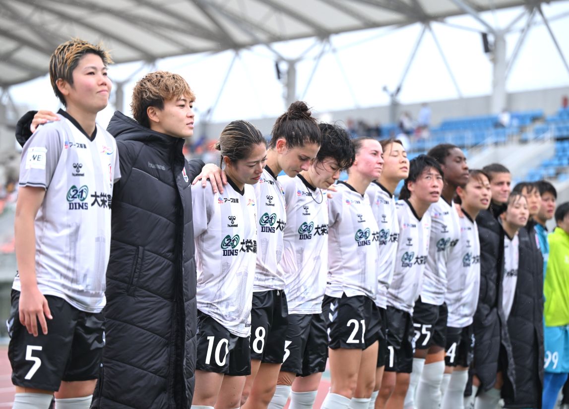 戦い終えたINAC神戸 左端が5三宅史織キャプテン(5/17 相模原ギオンスタジアム)/ (c)WE LEAGUE