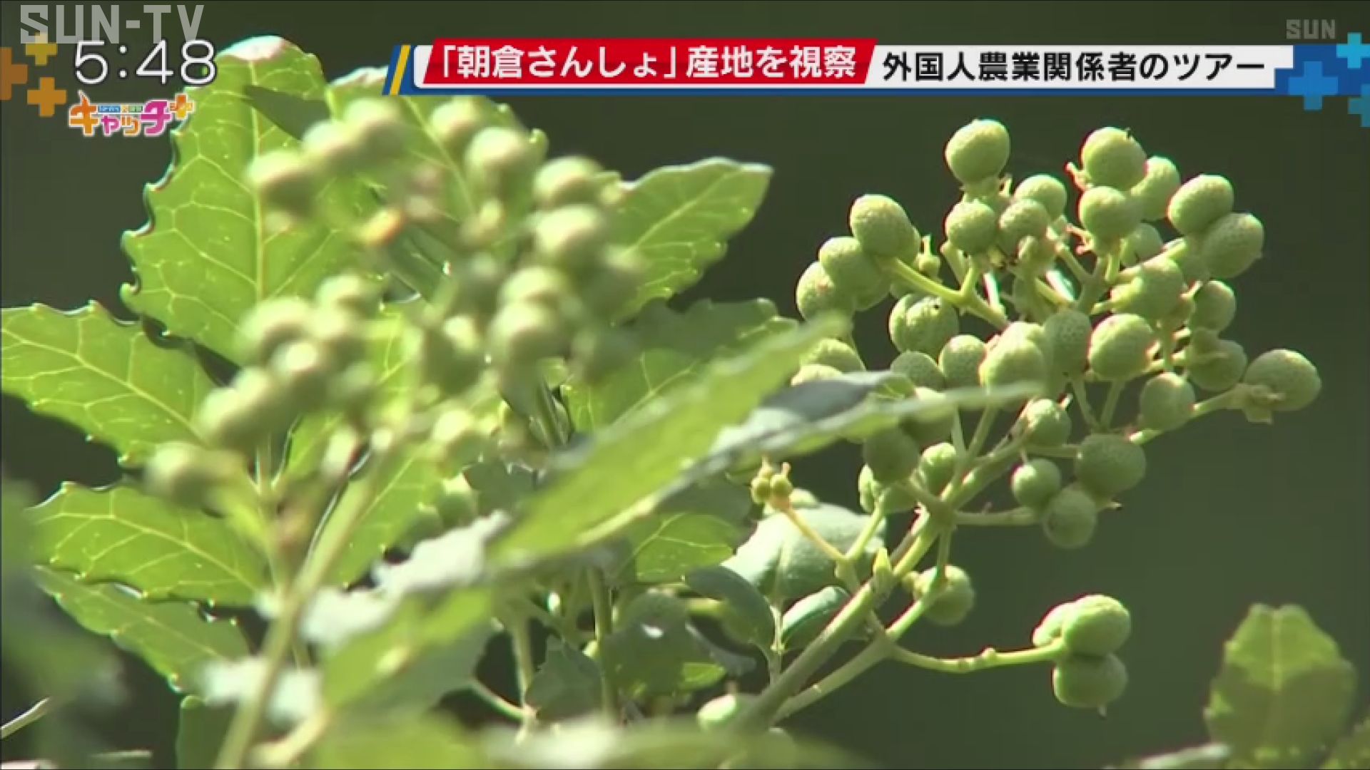 大粒で豊かな香りと身が軟らかいことで知られる「朝倉さんしょ」。この養父市の特産品の産地を視察したのは、スイスなどからの農業関係者18人です。