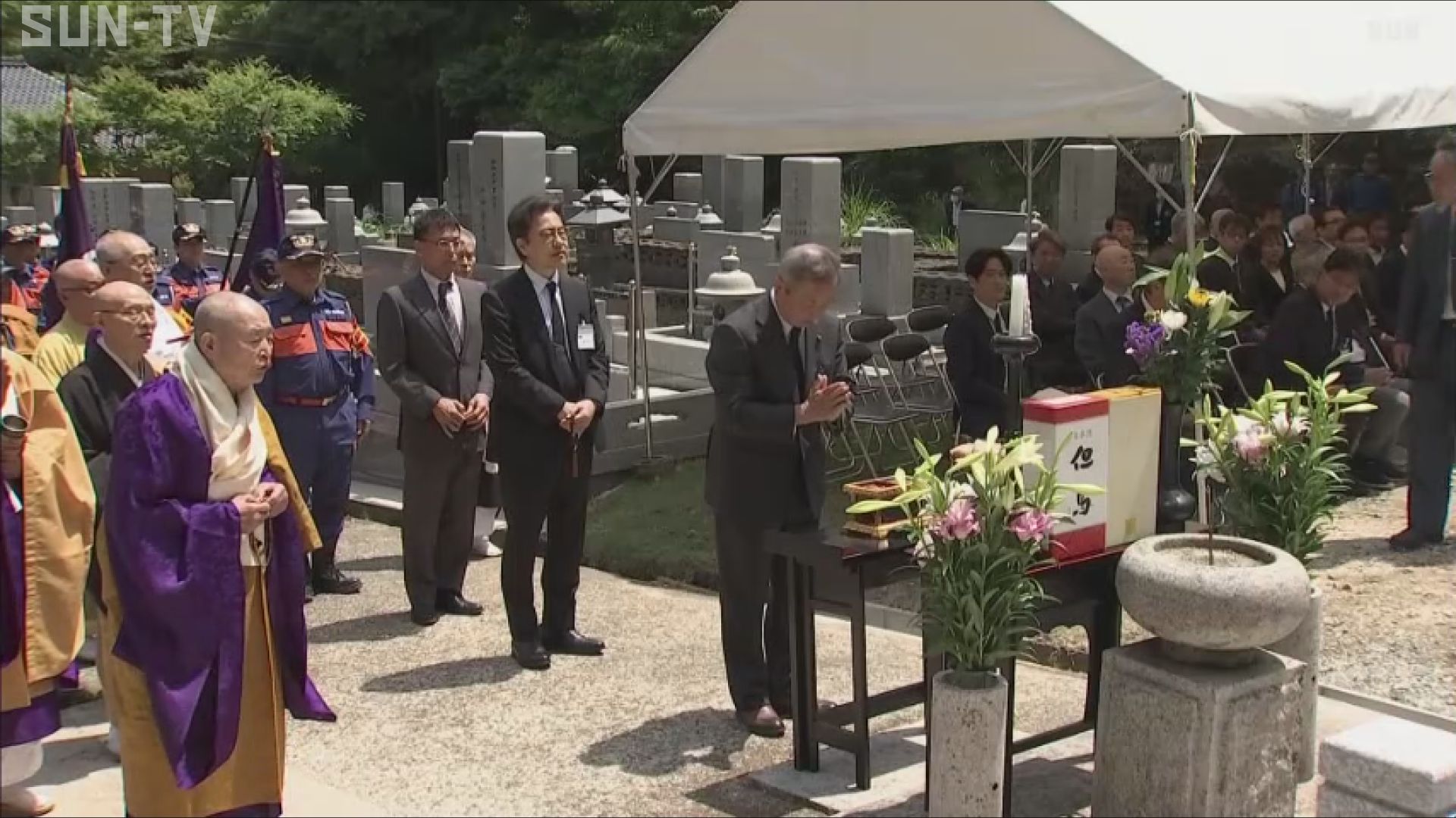 豊岡市城崎町で営まれた追悼行事には、豊岡市の門間雄司市長や、地元の消防団員などが出席し、犠牲者に黙とうを捧げました。