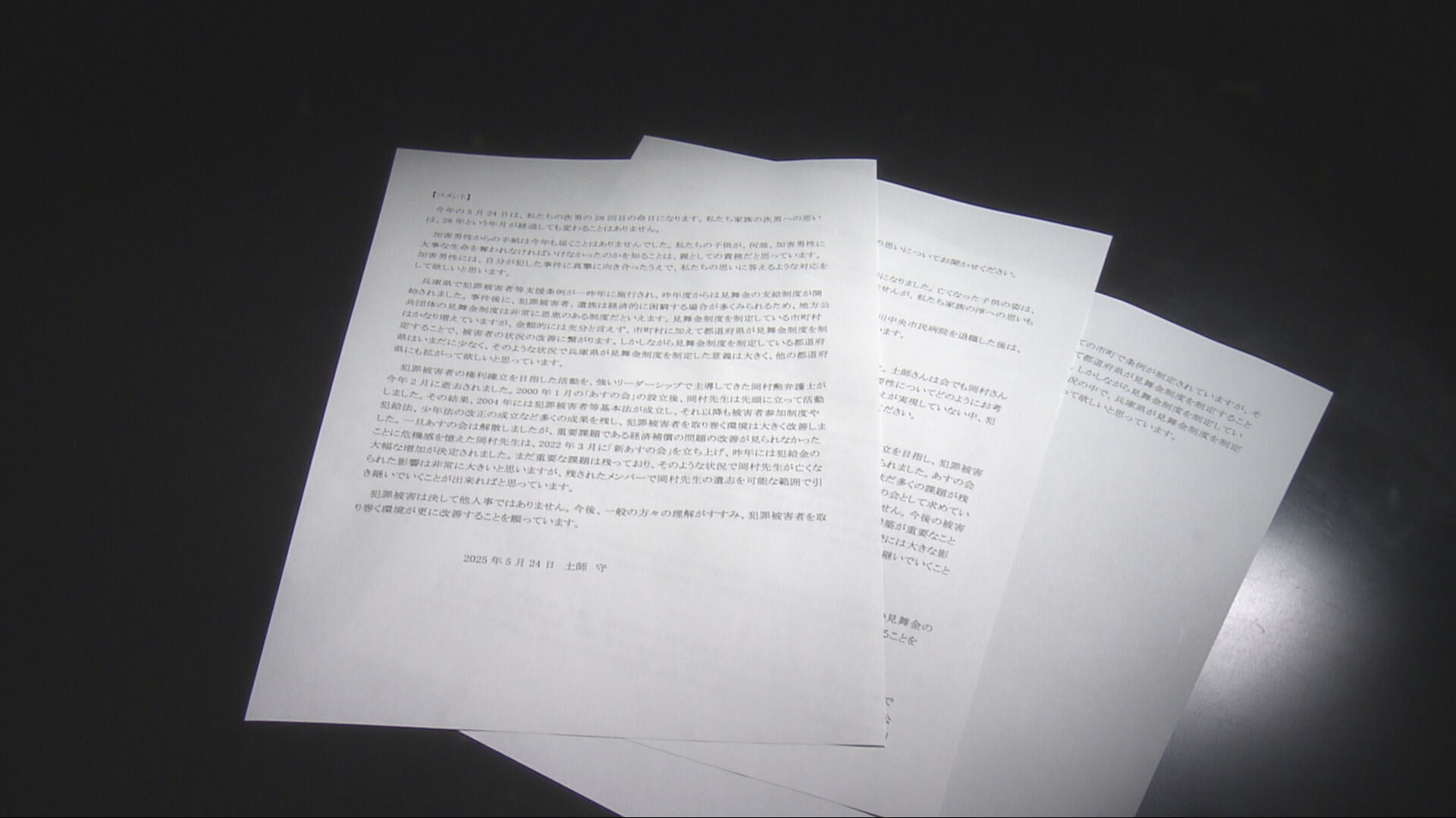 また、兵庫県で犯罪被害者等支援条例が施行され、見舞金制度が制定されたことについて、「意義は大きく、他の都道府県にも拡がって欲しい」とし、「犯罪被害者を取り巻く環境が更に改善することを願っています」とコメントしました。