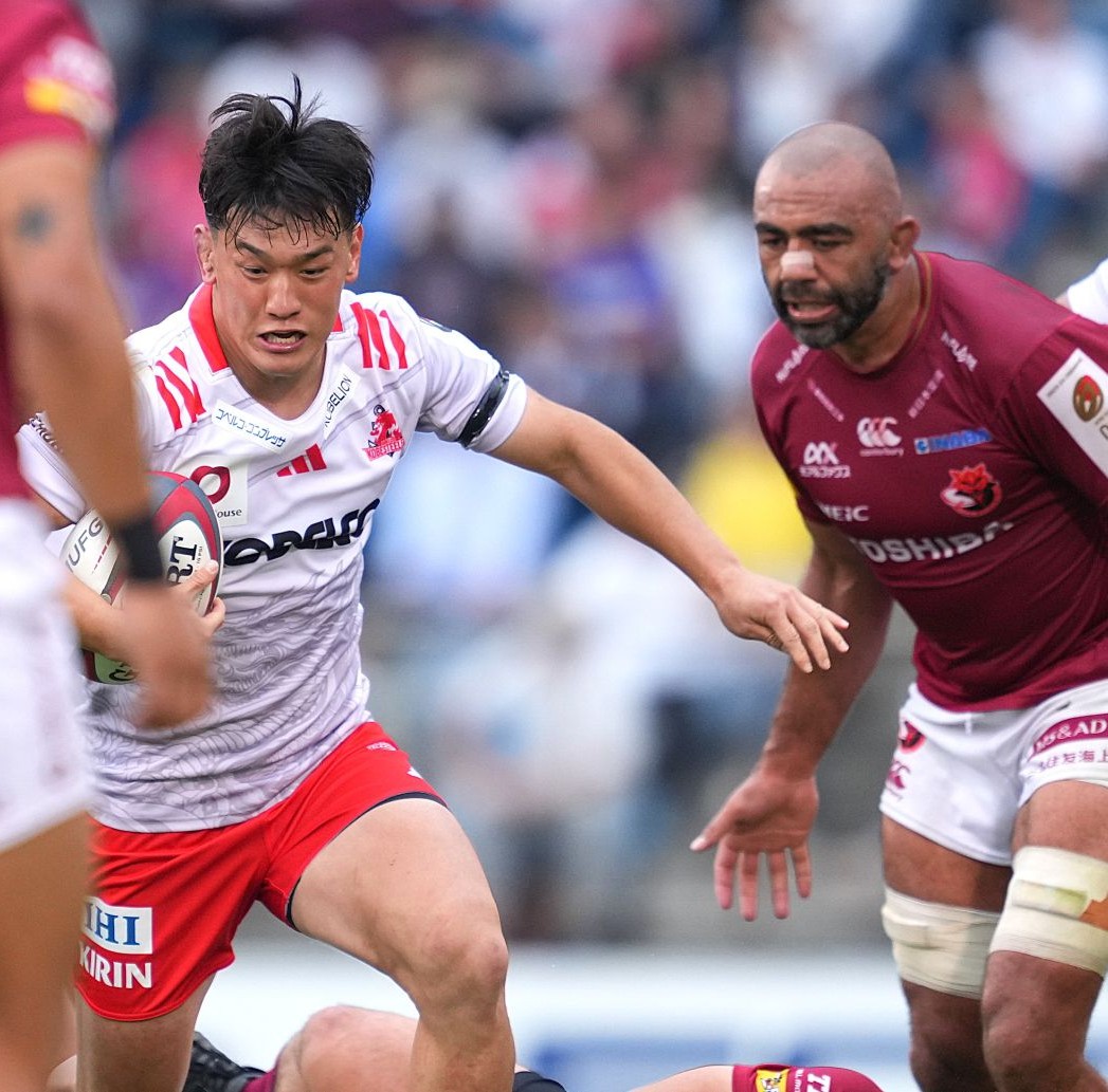 さらにヴィリー・ポトヒエッターやマイケル・リトルがランで敵陣に攻め込み、15分にBL東京に逆転トライを許したあとも、26分にアーリーエントリー選手の植田和磨(報徳学園高-近畿大)がパスを受けてインゴールに飛び込んだが、「ノックフォーワード」(ボールを前に落とす)を取られ、トライ失敗。