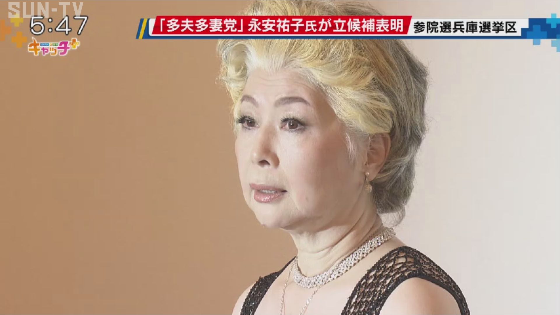 この夏に予定されている参院選・兵庫選挙区に、政治団体「多夫多妻党」代表の永安祐子さんが立候補を表明しました。