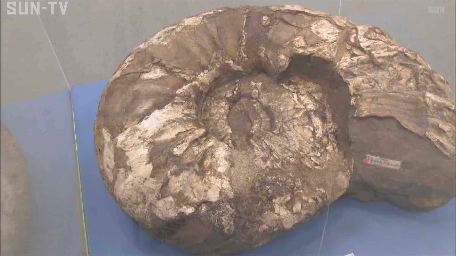 会場には、北海道や淡路島で見つかった化石が展示されていて中には、直径およそ70センチの大きさを誇るものや、変わった形をした「異常巻き」と呼ばれるものも紹介されています。