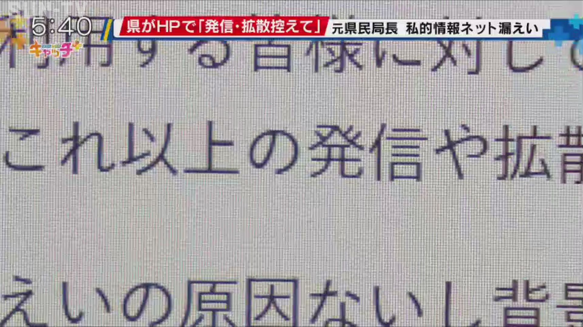 元西播磨県民局長の公用パソコン内にあった私的な情報が、インターネット上に漏えいした問題で、兵庫県はこれ以上の発信や拡散をしないよう呼び掛ける文章をホームページに掲載しました。