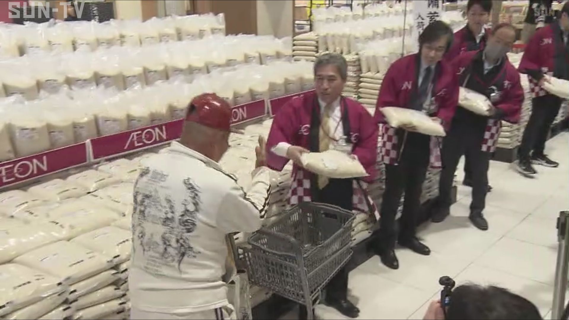 イオンは、随意契約で備蓄米2万トンを購入していて、大阪ドームシティ店のほか東京、千葉、名古屋の合わせて4店舗で販売します。