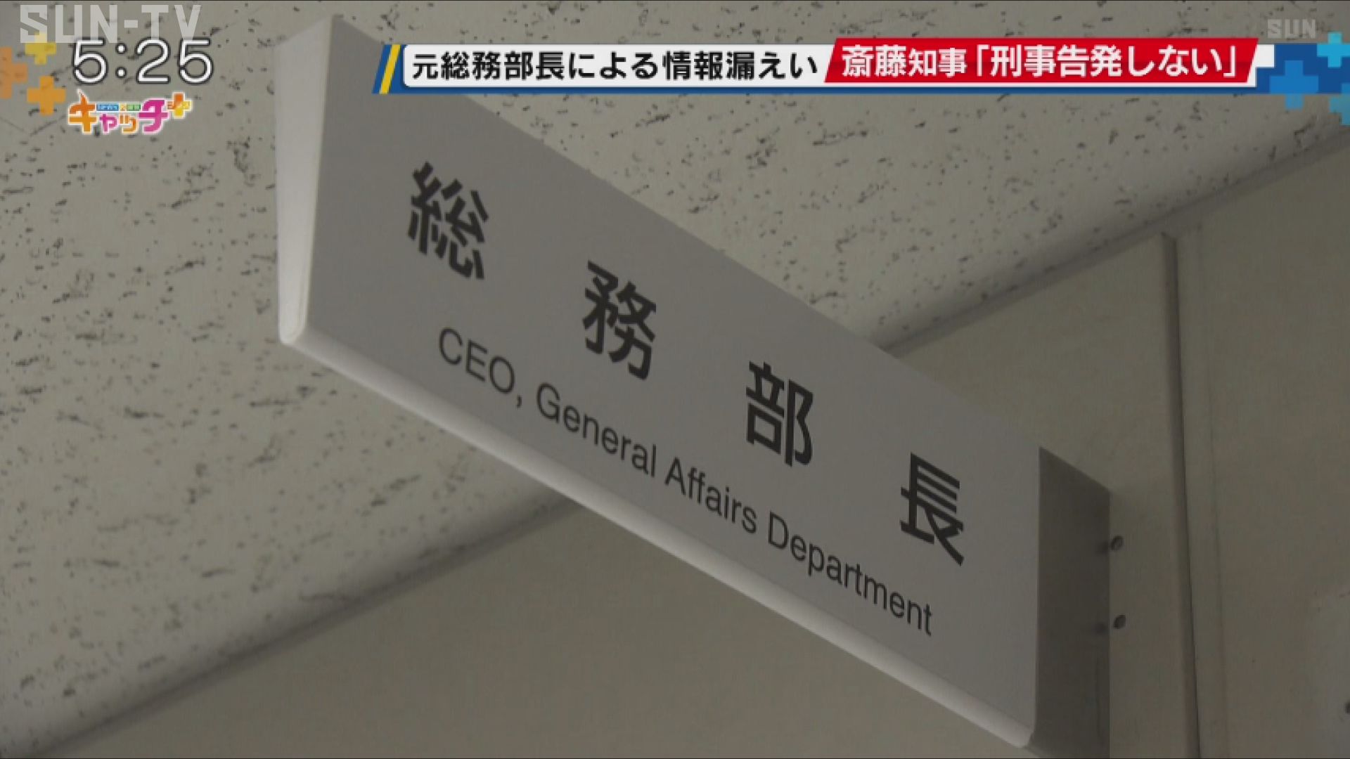 斎藤知事への告発文書問題を巡っては、告発した元西播磨県民局長の公用パソコンにあった私的情報が県議らに漏えいし、5月、第三者調査委員会は、元総務部長が漏えいしたとする調査結果を公表しました。