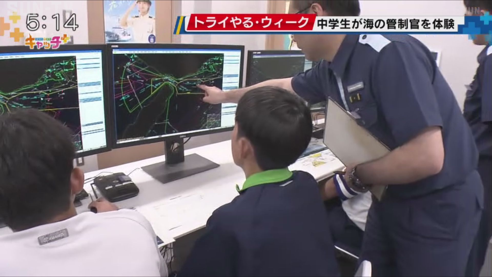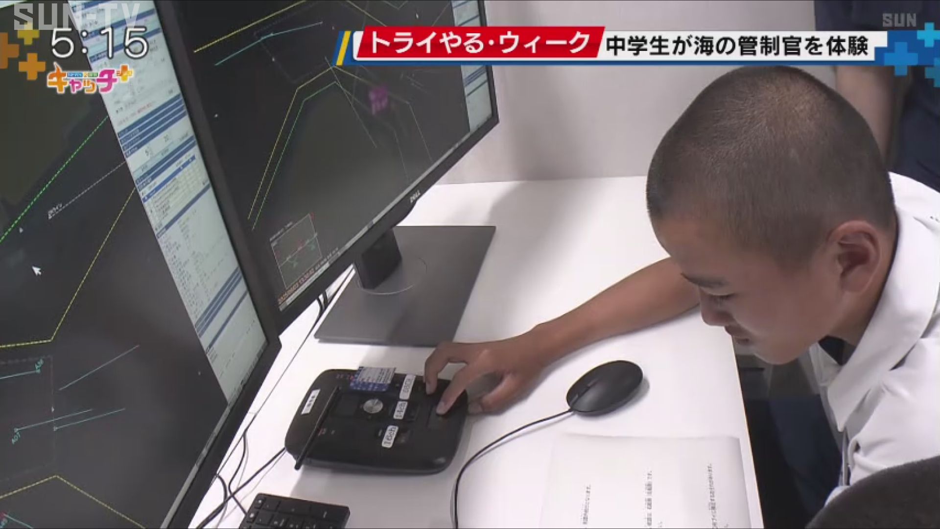 神戸市にある海上保安庁の施設で5日、「トライやる・ウィーク」で訪れた姫路市の中学生が、海の管制官の仕事を体験しました。
