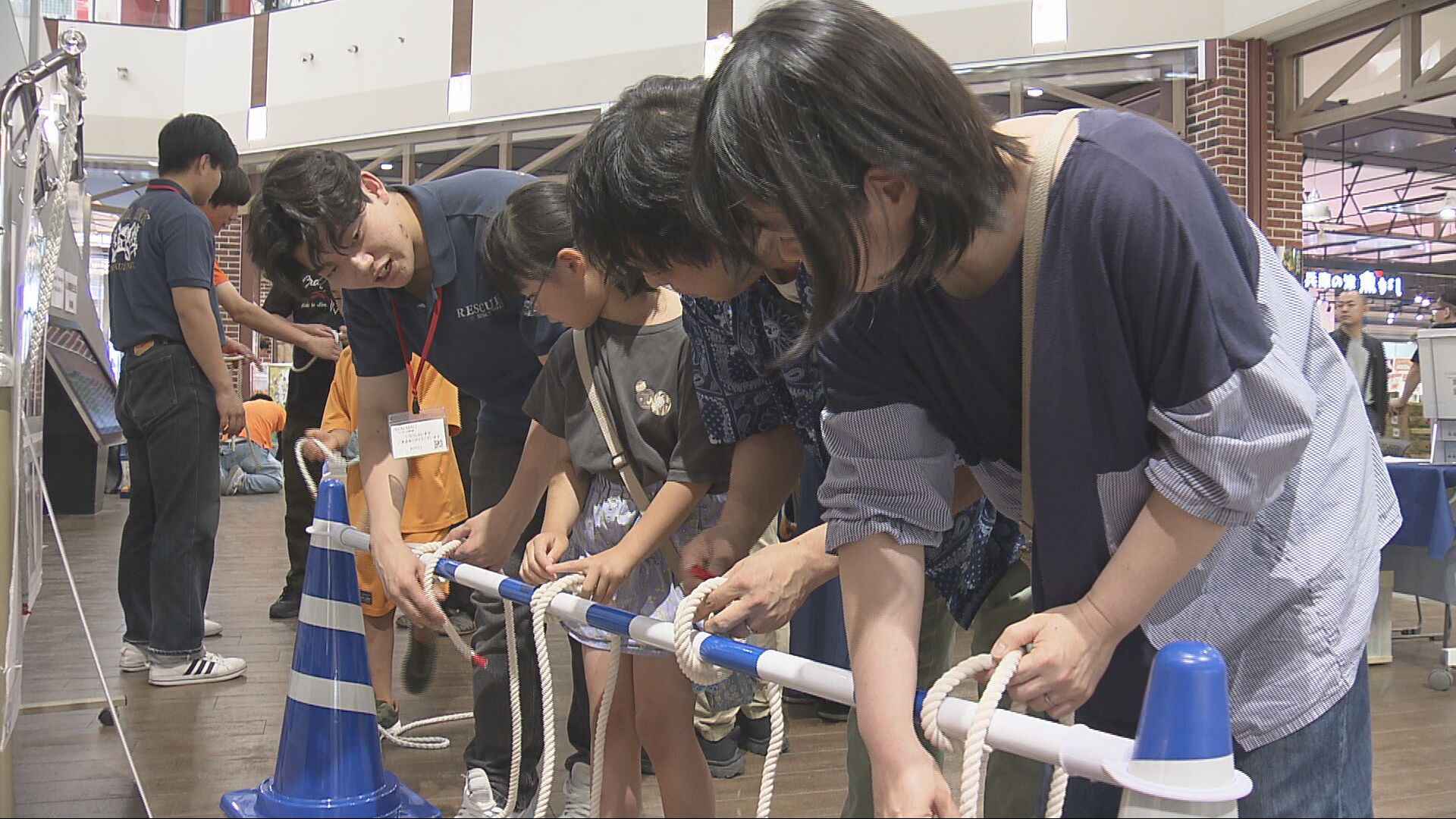 • 防災に役立つロープの結び方を学ぶ参加者