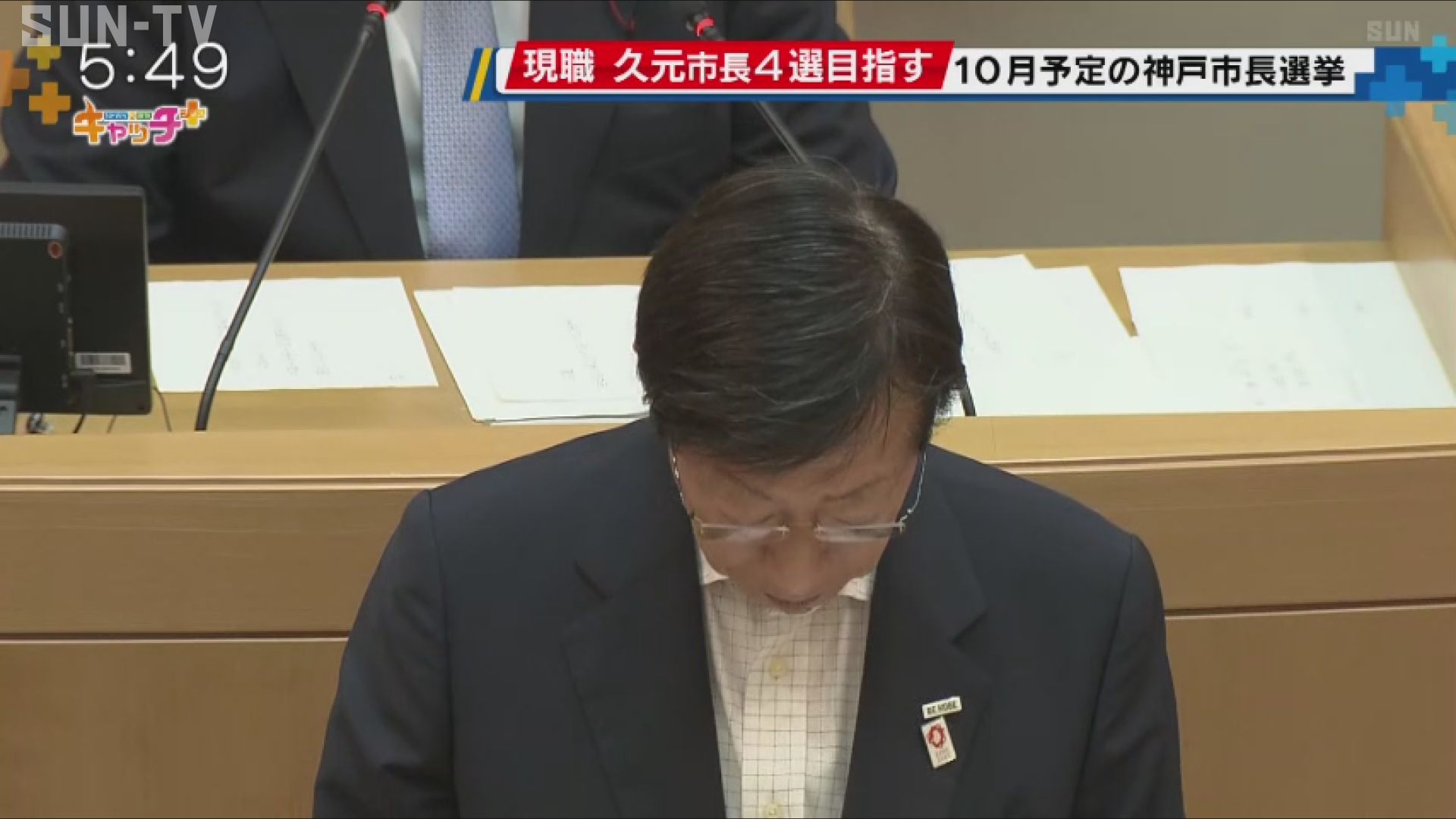 任期満了に伴い10月に予定されている神戸市長選挙に、現職の久元喜造市長が4選を目指し、立候補する意向を表明しました。