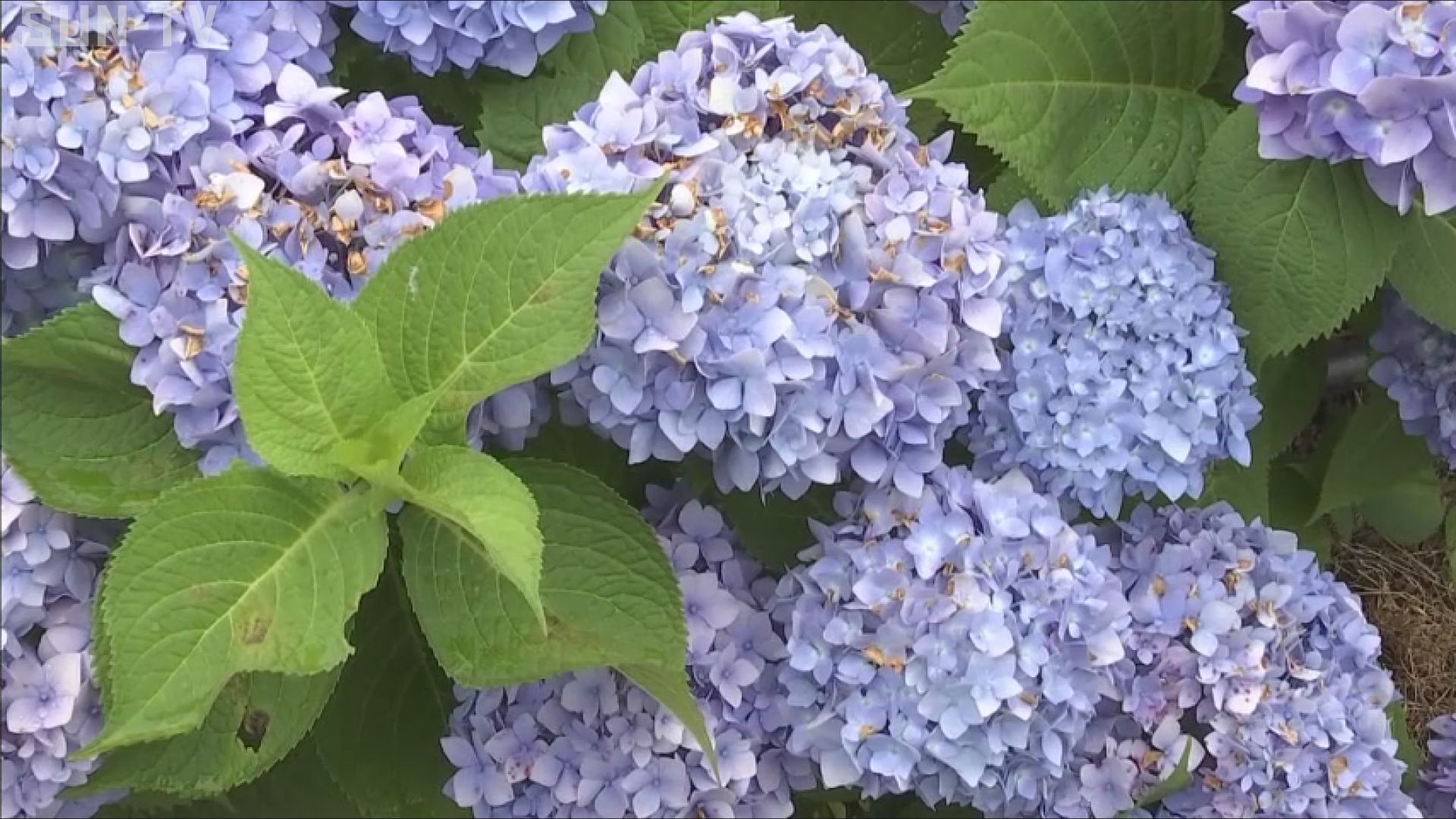洲本市の観光農園「あわじ花山水」に広がるおよそ5000平方メートルの「あじさい園」では、紫やピンク、水色など約70種類4000株のアジサイが、次々と花と咲かせています。