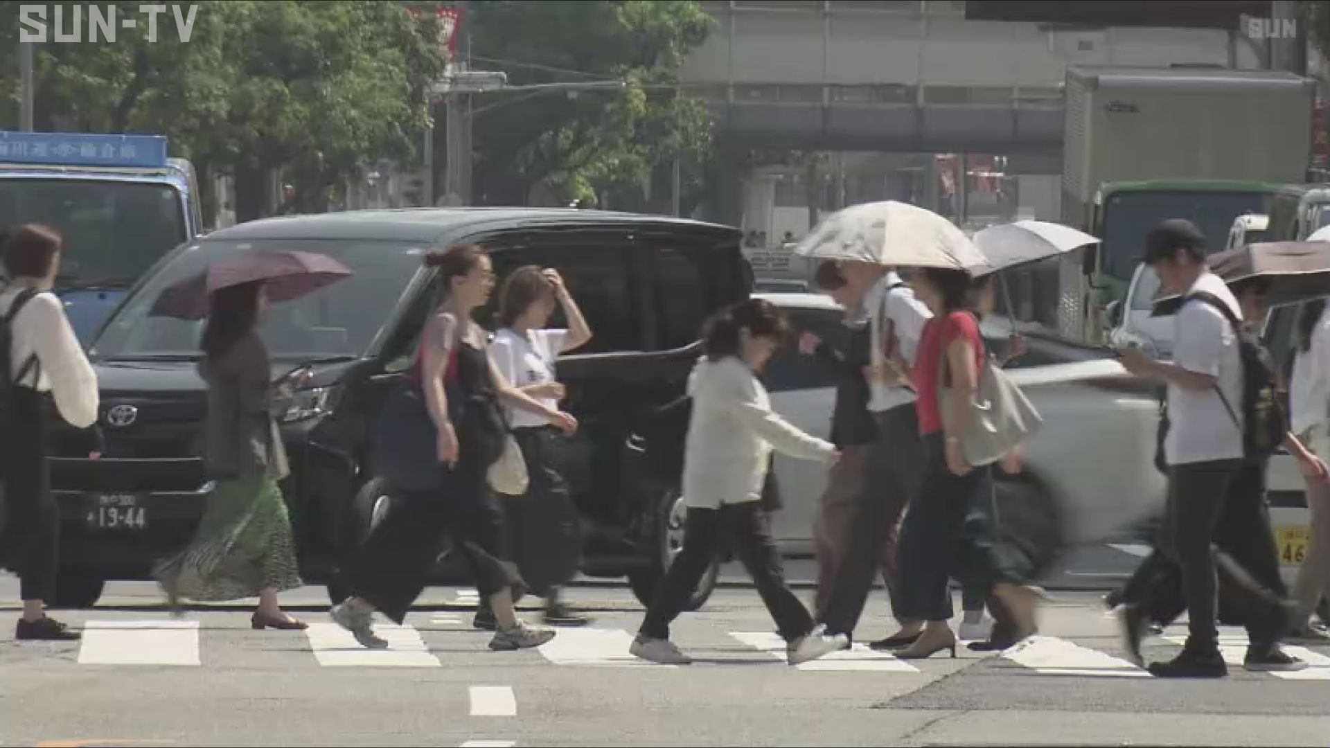 神戸・元町周辺では、強い日差しの下、日傘やハンディファンなどで、蒸し暑さをしのぐ人の姿が見られました。