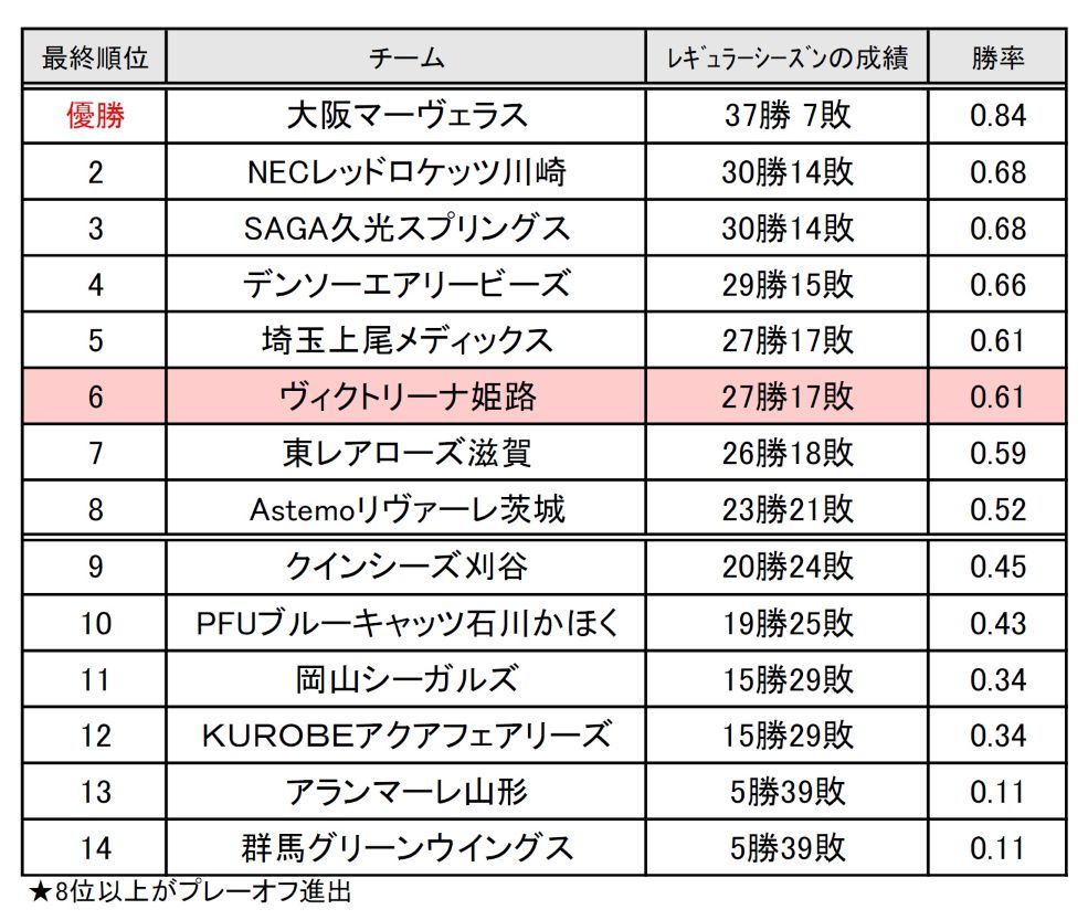 SVリーグ元年の昨シーズン(2024-25シーズン)、ヴィクトリーナ姫路は27勝17敗で6位だったが、皇后杯では初優勝を果たした。