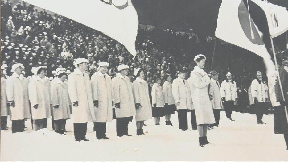 1960年、高校2年の時にスコーバレー五輪に出場し、日本女子選手で初となる旗手の大役を務めました。