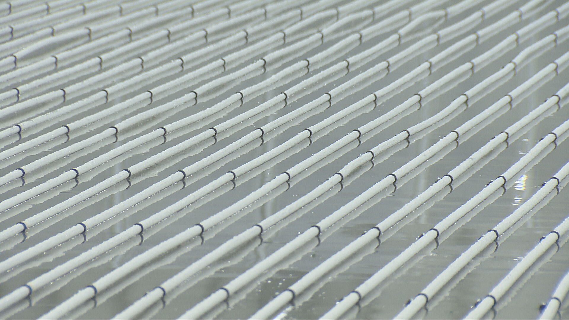 60メートル×30メートルのリンクに敷き詰められた氷を作るための冷却管。