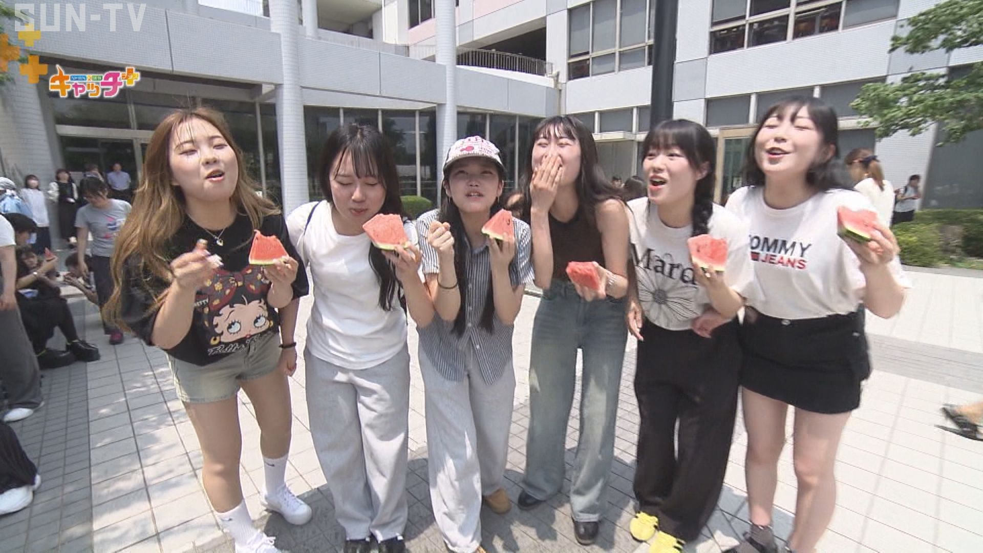 夏休みが始まるのを前に、神戸女子大学では、毎年恒例の「すいか祭り」が開かれ学生たちが夏の味覚を堪能しました。